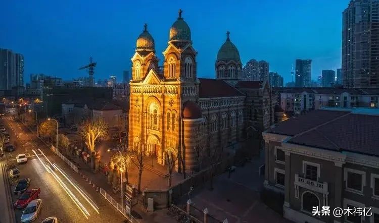 西开教堂是天津市最大的天主教堂,也是天主教天津教区主教座堂。1916年由法国传教士杜保禄主持修建,包括天主教总堂和大教堂。整个建筑为法国罗曼风格,平面呈长十字形,正面和后部耸立高大塔楼三座。整体建筑呈“品”字形。楼座以黄、红花砖砌成,上砌翠绿色圆肚型尖顶,檐下为半圆形拱窗。正厅为三通廊式。教堂每日早晨举行宗教活动。逢星期日及天主教节日,早晚皆有宗教活动。