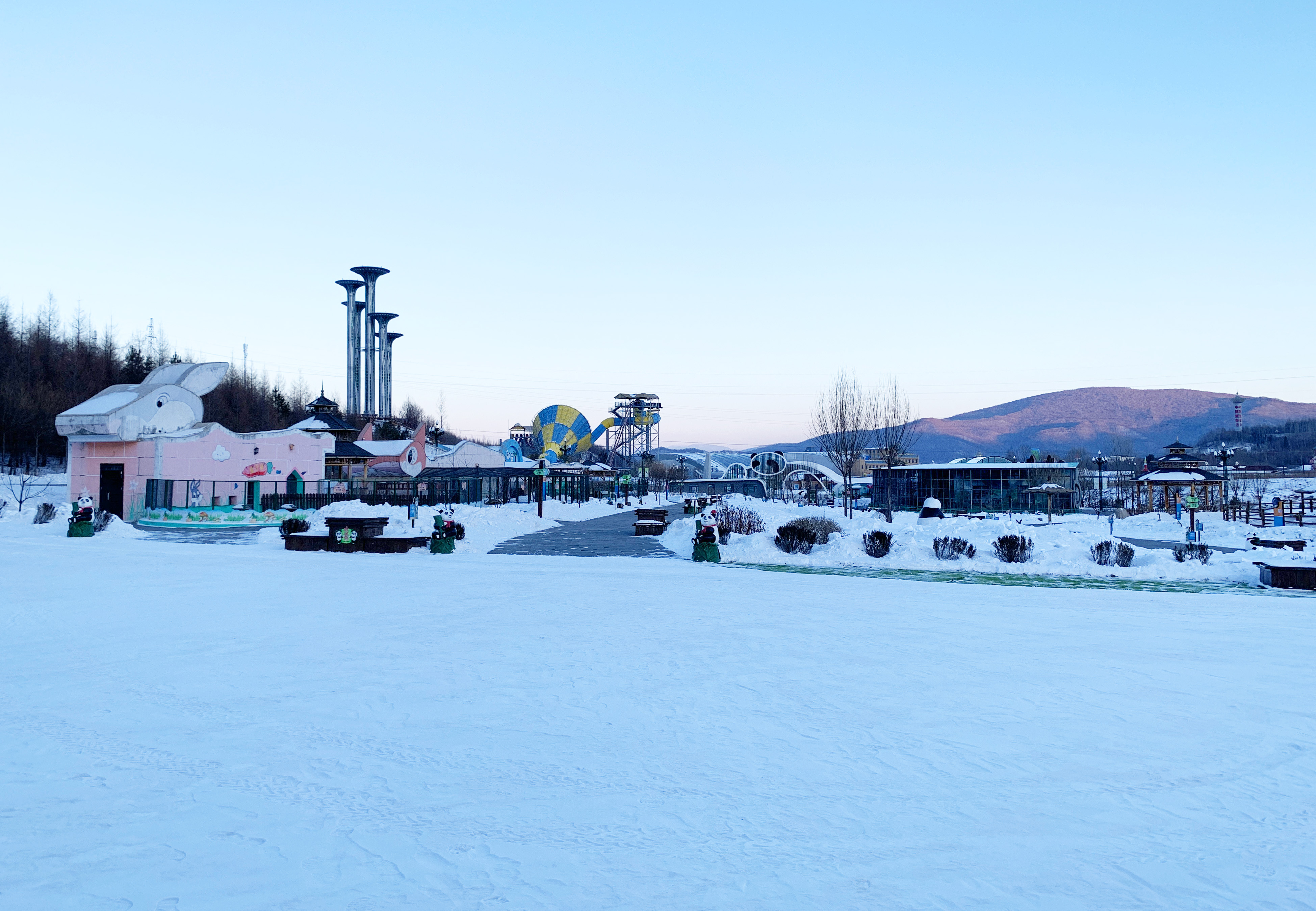 傍晚的天空,泛着湛蓝色,温泉池上,冒着一缕缕白烟。雪地里,可爱的小兔子,麋鹿,在灯光下,宛若一只只活蹦乱跳的森林精灵,让人仿佛走进了童话世界。