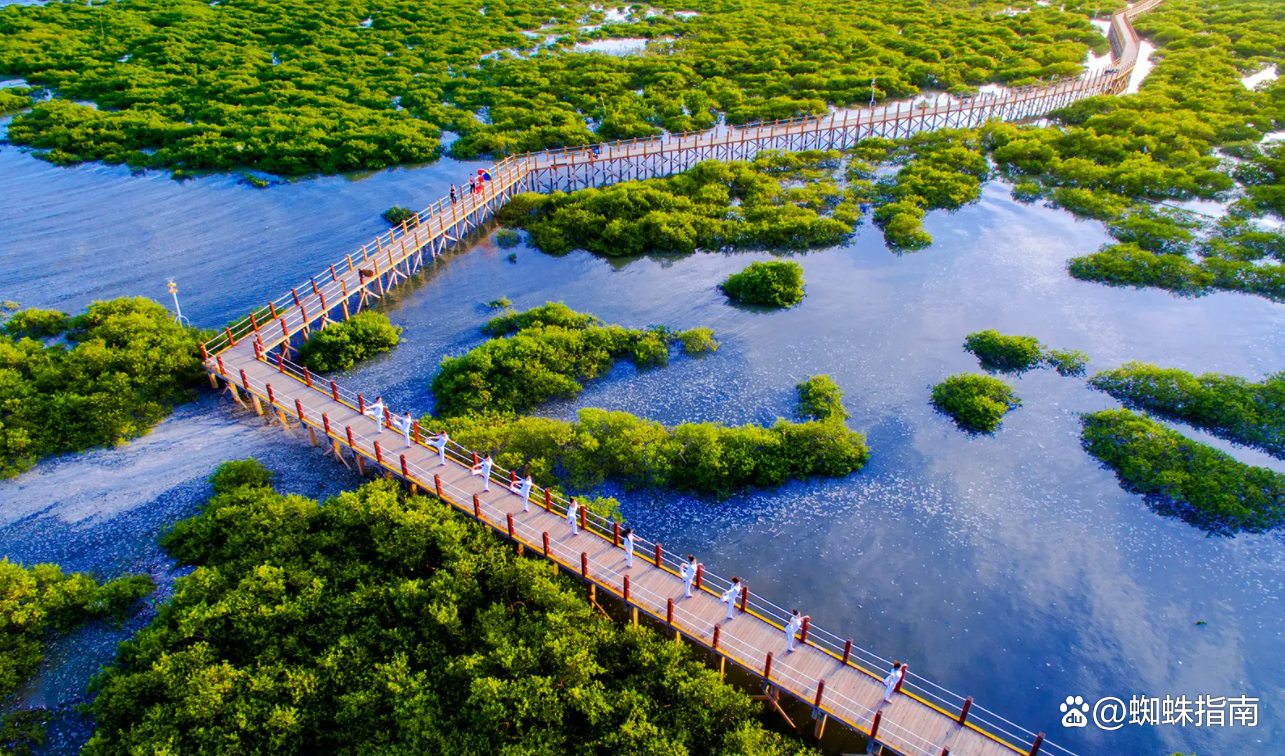 北海金海湾红树林生态旅游区是我国极富滨海湿地风情和渔家文化内涵的黄金景点,一片3000多亩的红树林,葱葱郁郁形成了美丽的“海上森林”,是北海一张靓丽的生态名片。走进北海金海湾红树林,开启一场滨海生态之旅。原生态的天然氧吧,这里的景色很漂亮,有沙滩,也有栈道,可以与红树林亲密接触,也很适合拍照打卡。