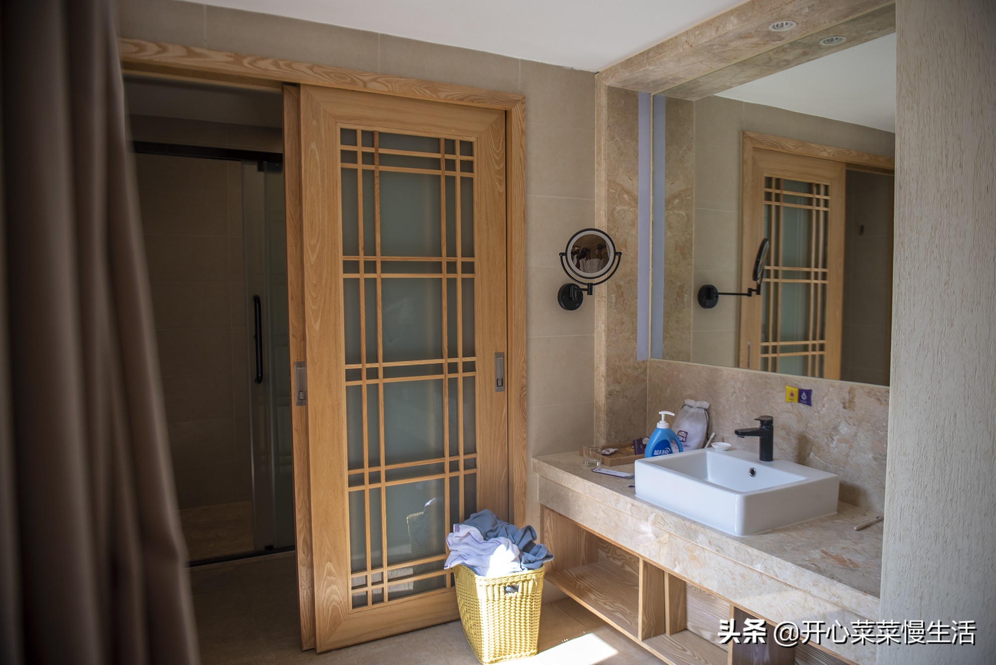 我们在顺逸东方白盆湖温泉度假村预订了星空别墅套房,它有3房1庭院------1间1.8米大床房,1间1.35米双床房,2楼是至少能住3人的榻榻米,各有独立卫浴,一家人入住绰绰有余。