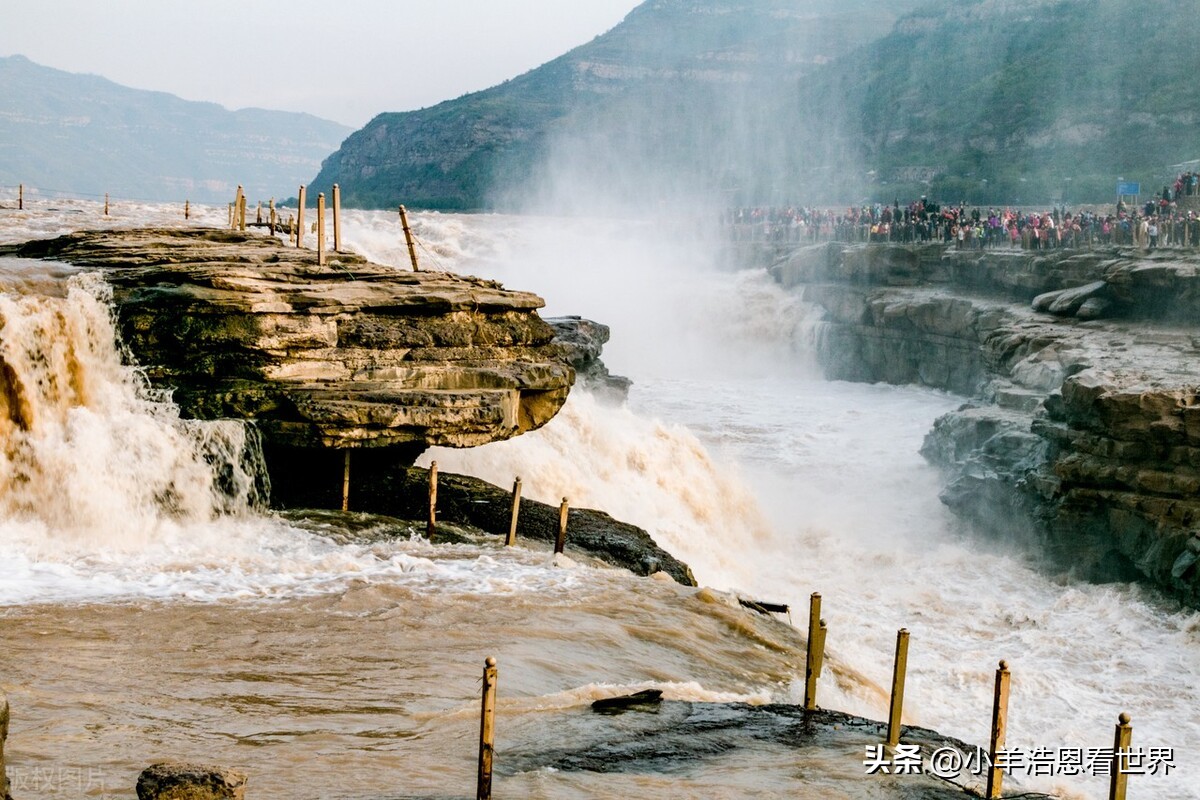 壶口瀑布位于山西省临汾市吉县壶口镇,是中国第二大瀑布,也是世界上最大的黄色瀑布,因其气势雄浑而享誉中外。 滔滔黄河水在流经吉县龙王山附近时,由于两岸苍山夹峙黄河水面由300米收缩为50米,从陡崖上倾注而下,猛跌深槽,溅起浪涛翻滚,犹如巨壶内黄水沸腾,其雄壮之势,无与伦比。
