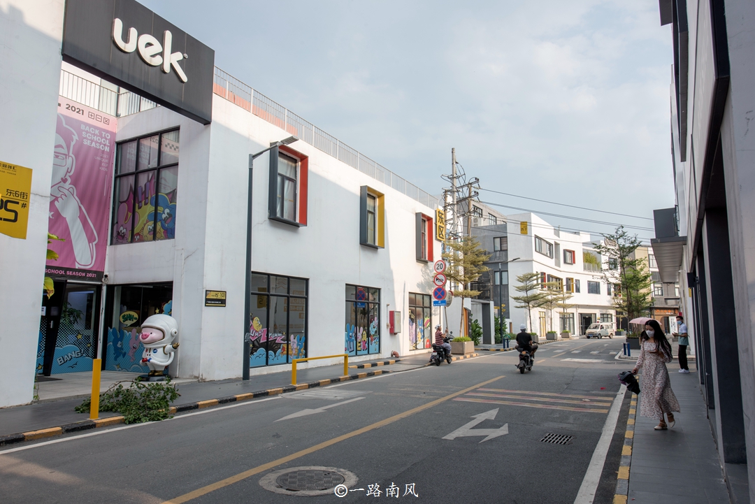 这个创意园马路宽敞、整洁,建筑物被改造成黑、黄、白、橙等色彩示人,这些建筑的几何线条简约雅致,色彩搭配恰到好处,自然而然散发出小资、文艺气息,感觉和新加坡的老街有几分相似之处。