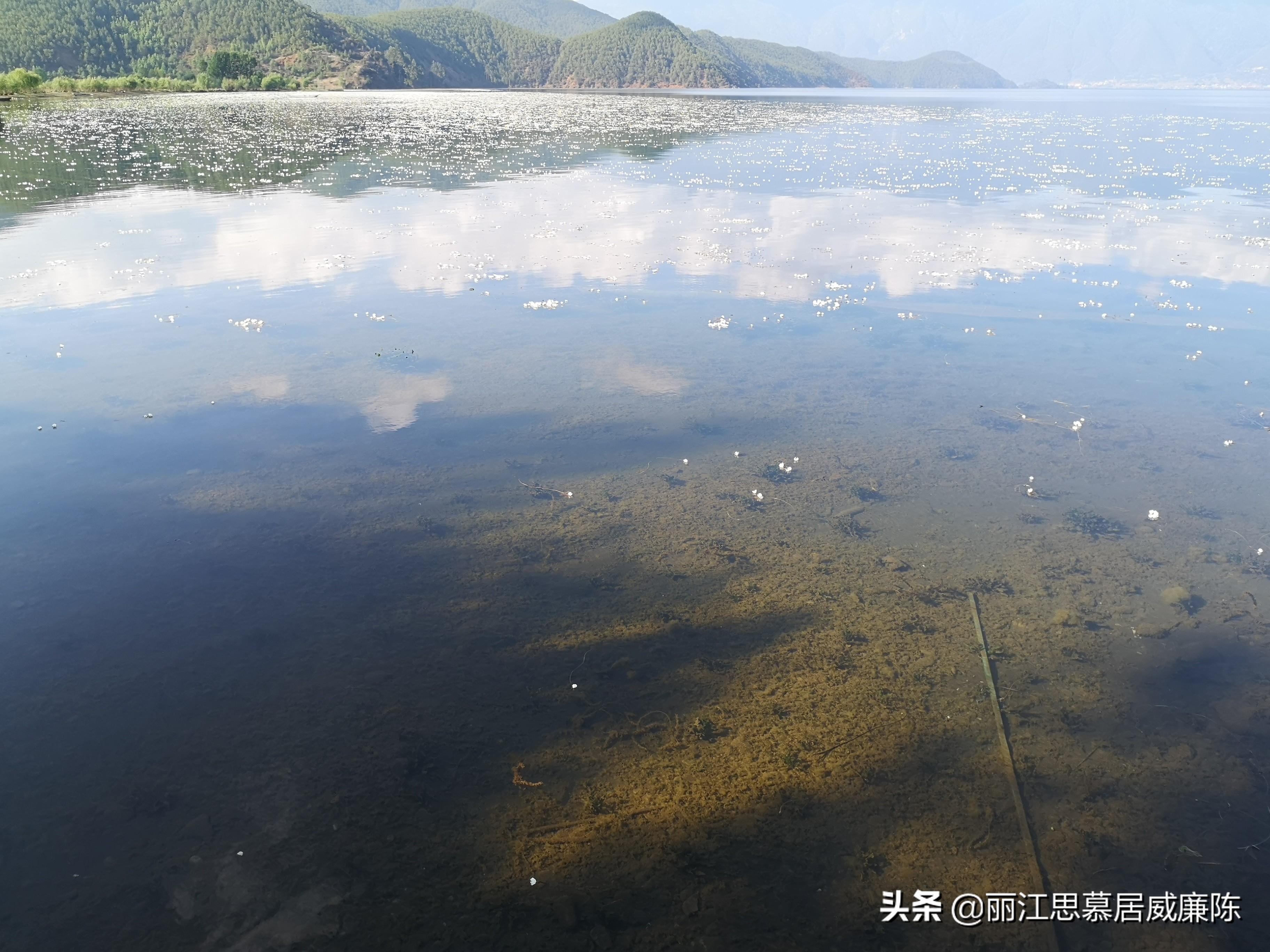 在船上,你会发现泸沽湖的最大的魅力,清澈见底的湖水,真正的一览无遗。配上飘在湖面上的点点白花,绝美。