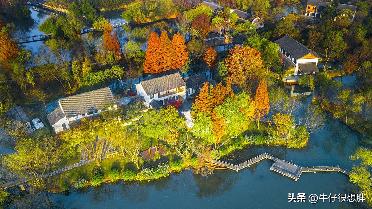 街道不宽不窄,刚刚好。一边是石板路一边是小河道,还有水草和落叶浮动,身处喧嚣闹市,却又感觉人在南山中,动静结合,古今交融。