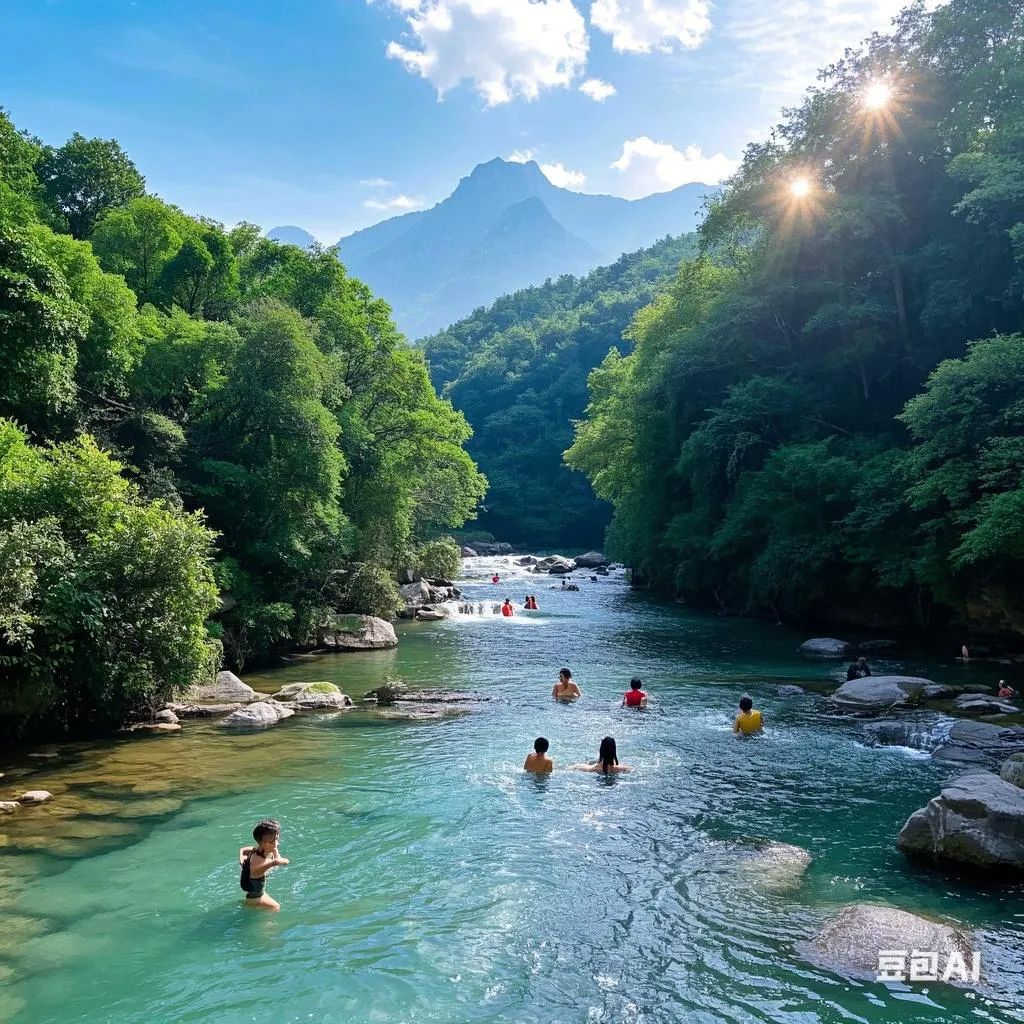 王婆岩可是成都人私藏的玩水圣地。沿着蜿蜒的山路前行,两侧绿树成荫,蝉鸣阵阵。溪水清澈见底,捧起一把,凉意瞬间从指尖传遍全身。在这里,你可以坐在溪边的大石头上,把脚泡进水里,感受小鱼小虾在脚边嬉戏;也能和家人朋友一起搭个帐篷,来一场惬意的溪边野餐。