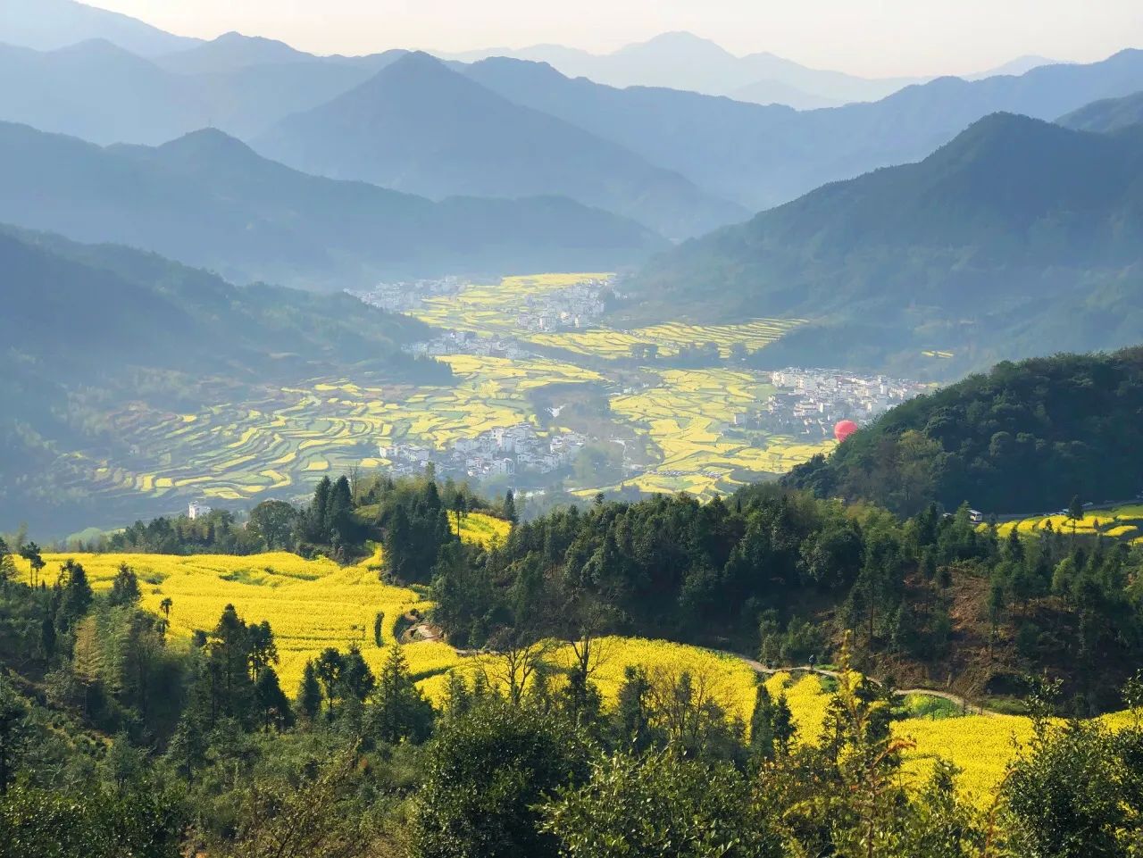 江岭是婺源著名的油菜花观赏地,是相对较少游客前往的区域。在这里,你可以欣赏到连绵起伏的梯田和金黄色的油菜花海。清晨或傍晚时分,阳光洒在花田上,景色尤为迷人。