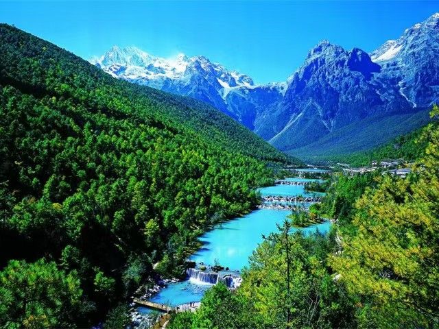 - 玉龙雪山:北半球最近赤道终年积雪的山脉,景色壮美,可乘索道上山观赏冰川等景观,周边的蓝月谷湖水湛蓝,宛如仙境。