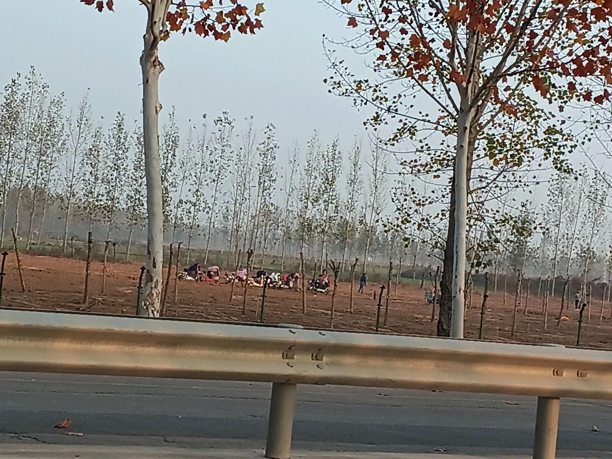 一处劳作场地离路较远,加之又在树林之中(为播种农作物,那田间的树都被锯去了树冠,仅留树干),我没看清他们在干什么。