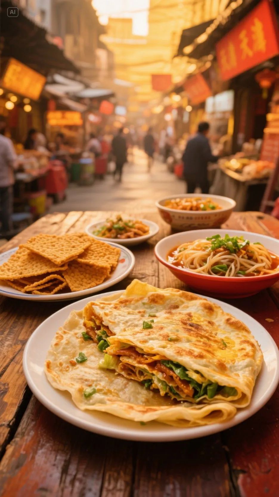 "花20块听段地道相声,笑到岔气时来套'二嫂子煎饼'——加辣条的邪教吃法,本地大爷直摇头但年轻人抢着买!"