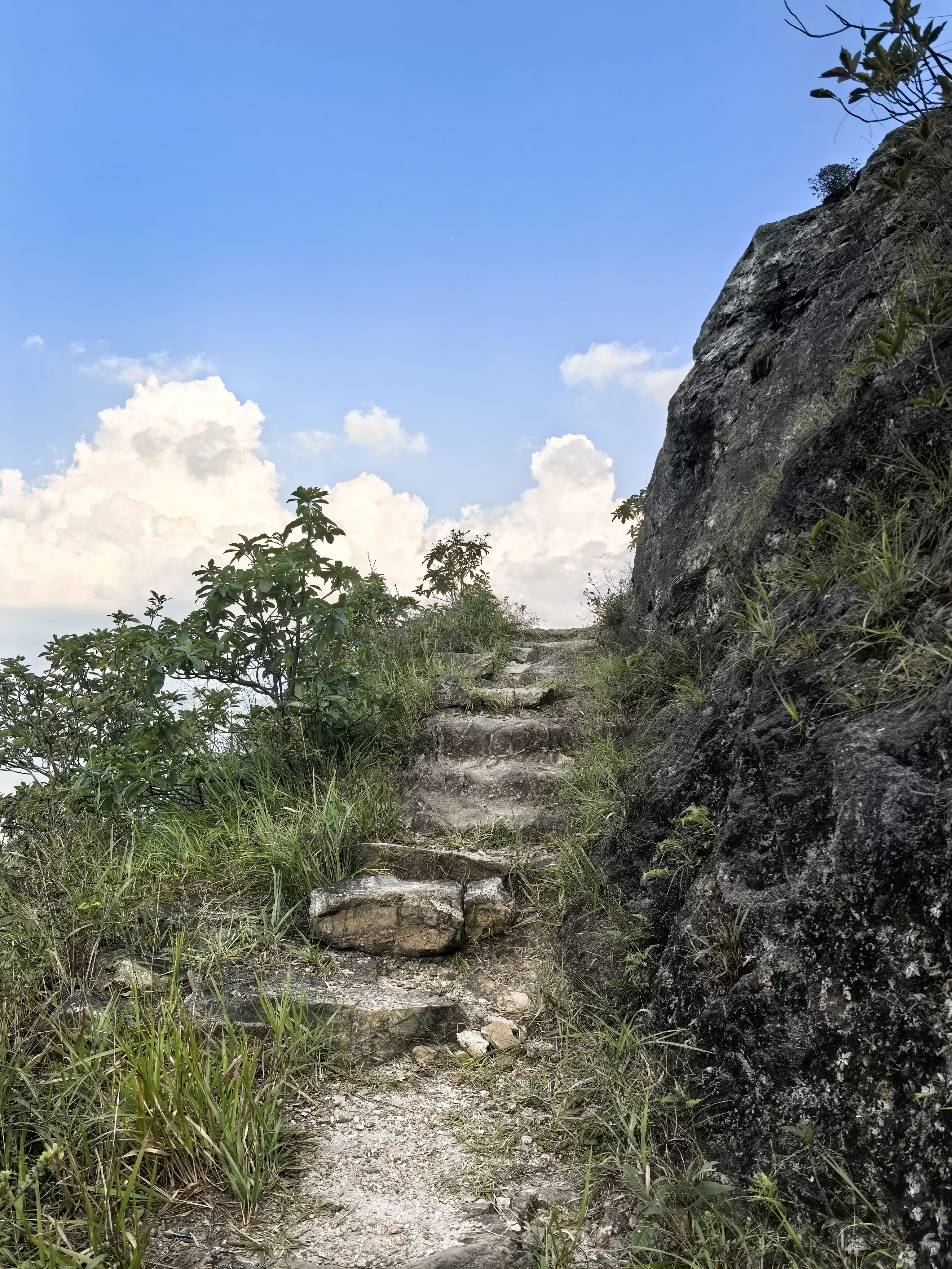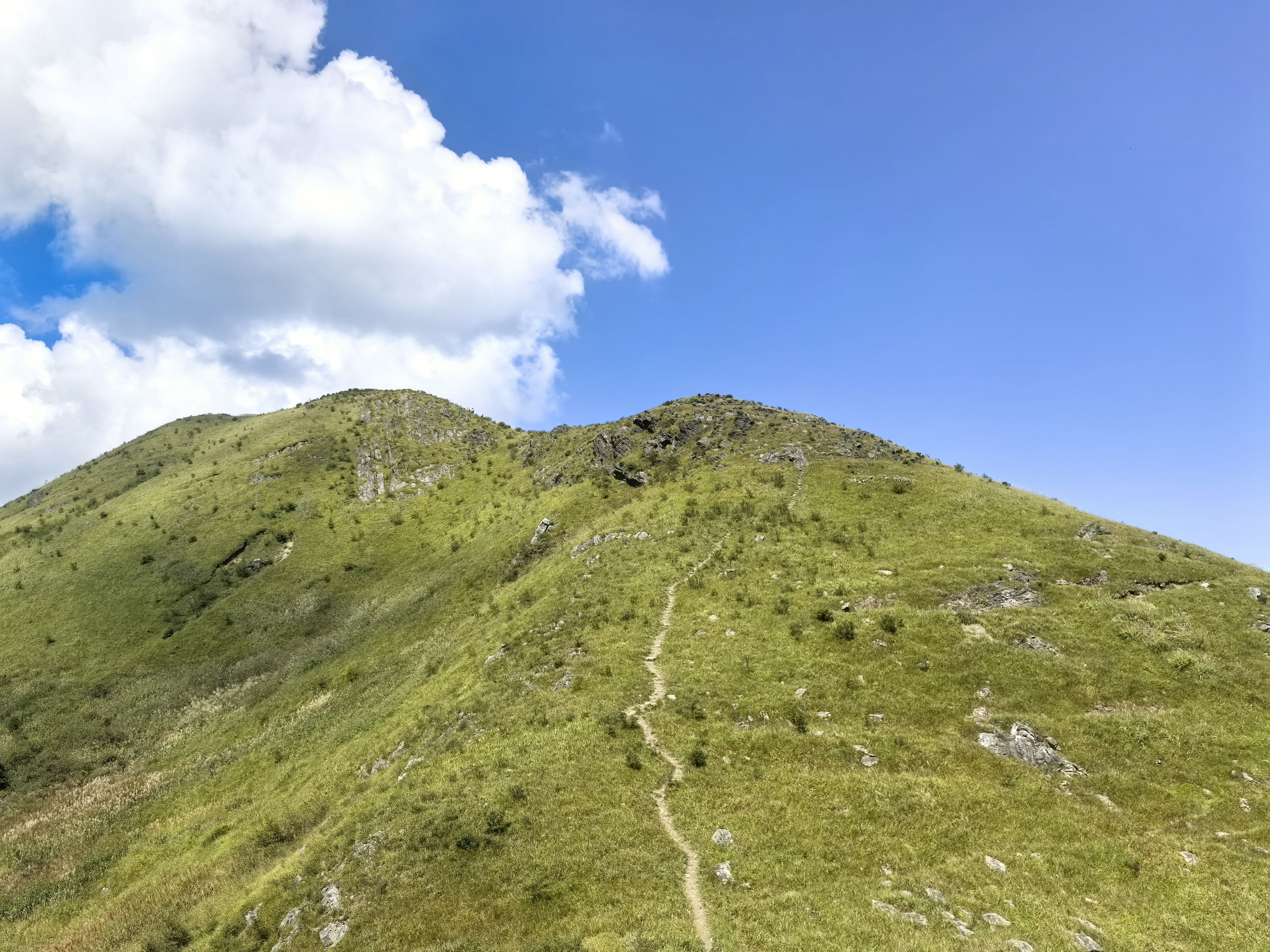 山顶有块草坪,可躺下仰望天空。若夜晚在此露宿,“星月皎洁,明河在天”的星空之美定会更迷人。