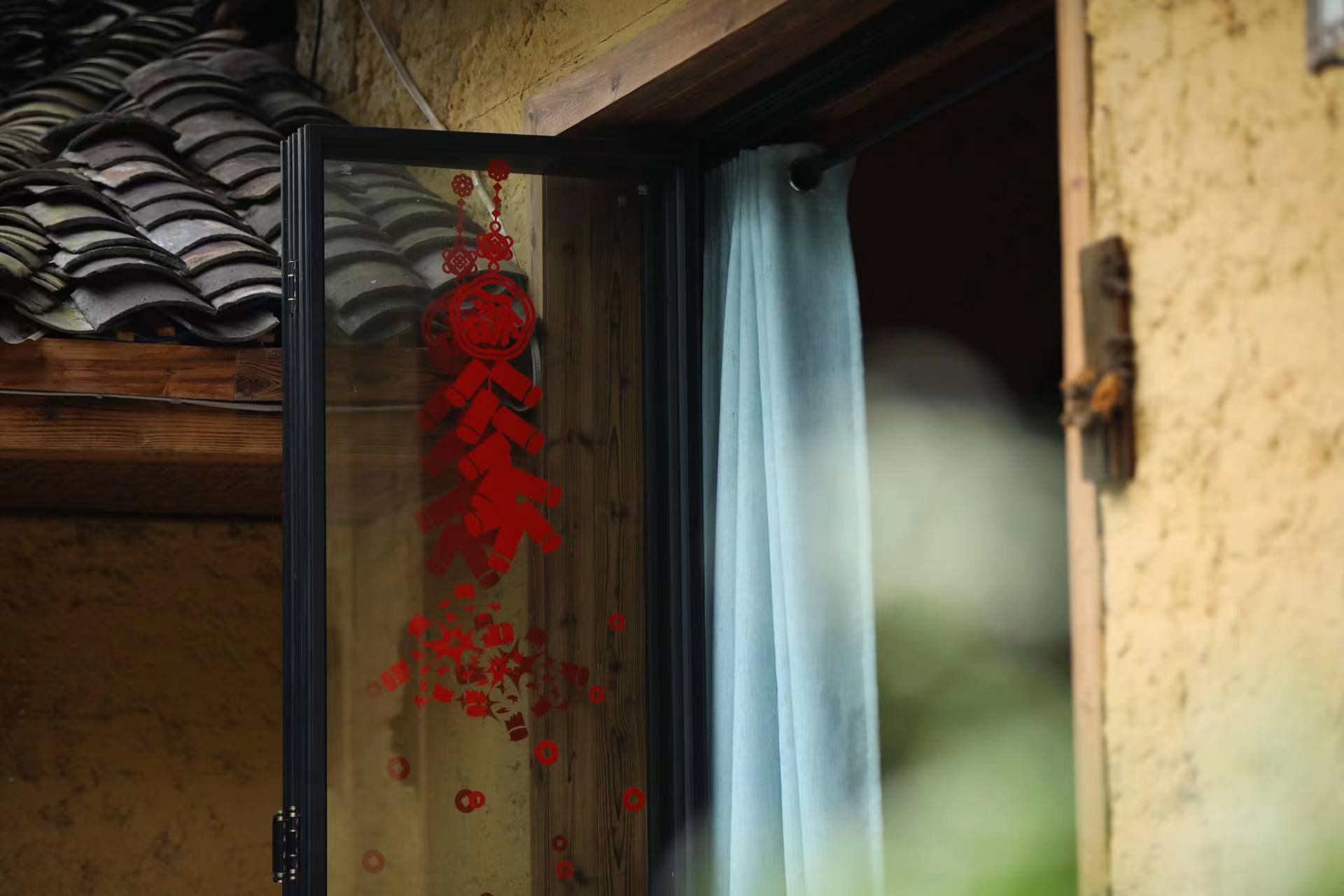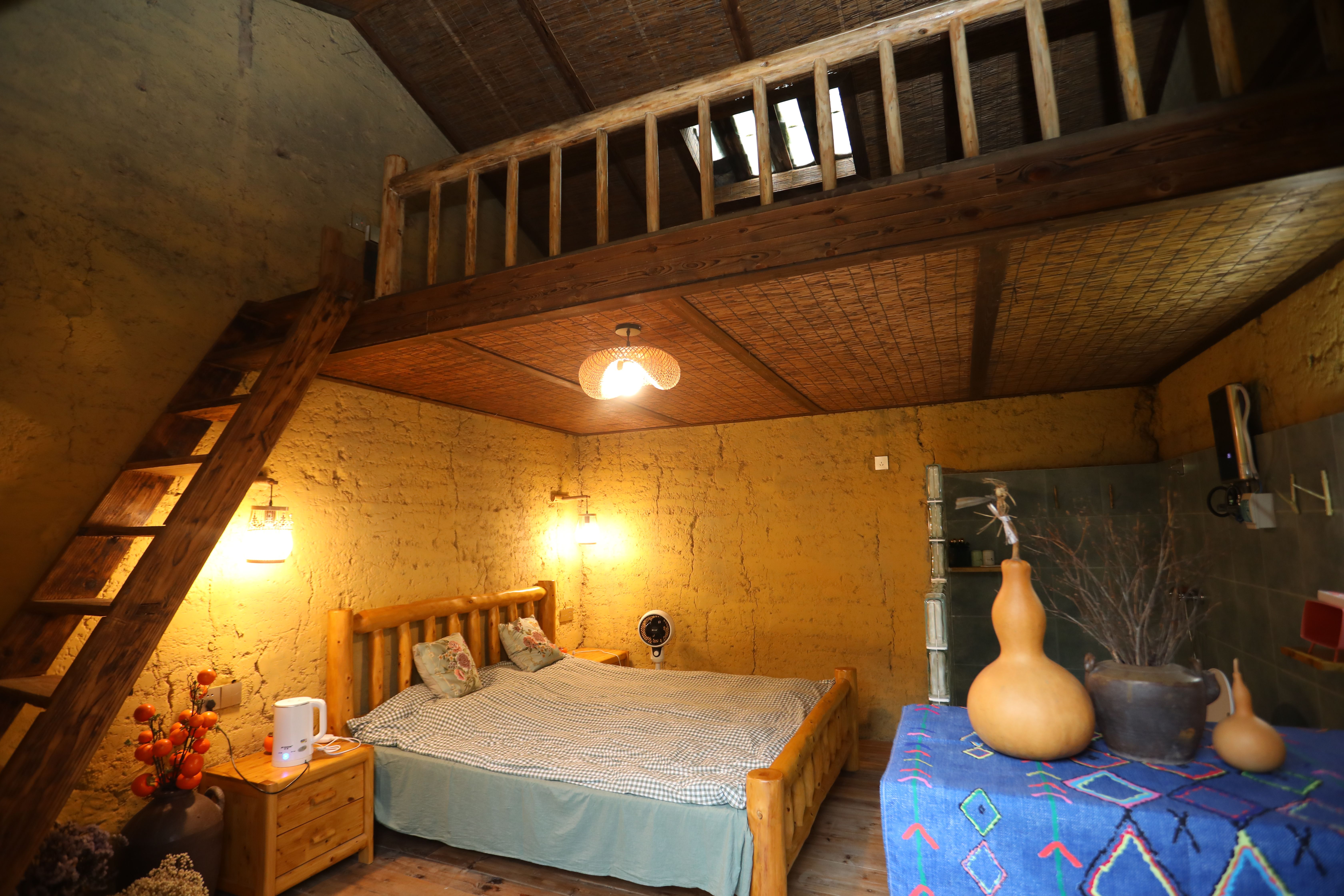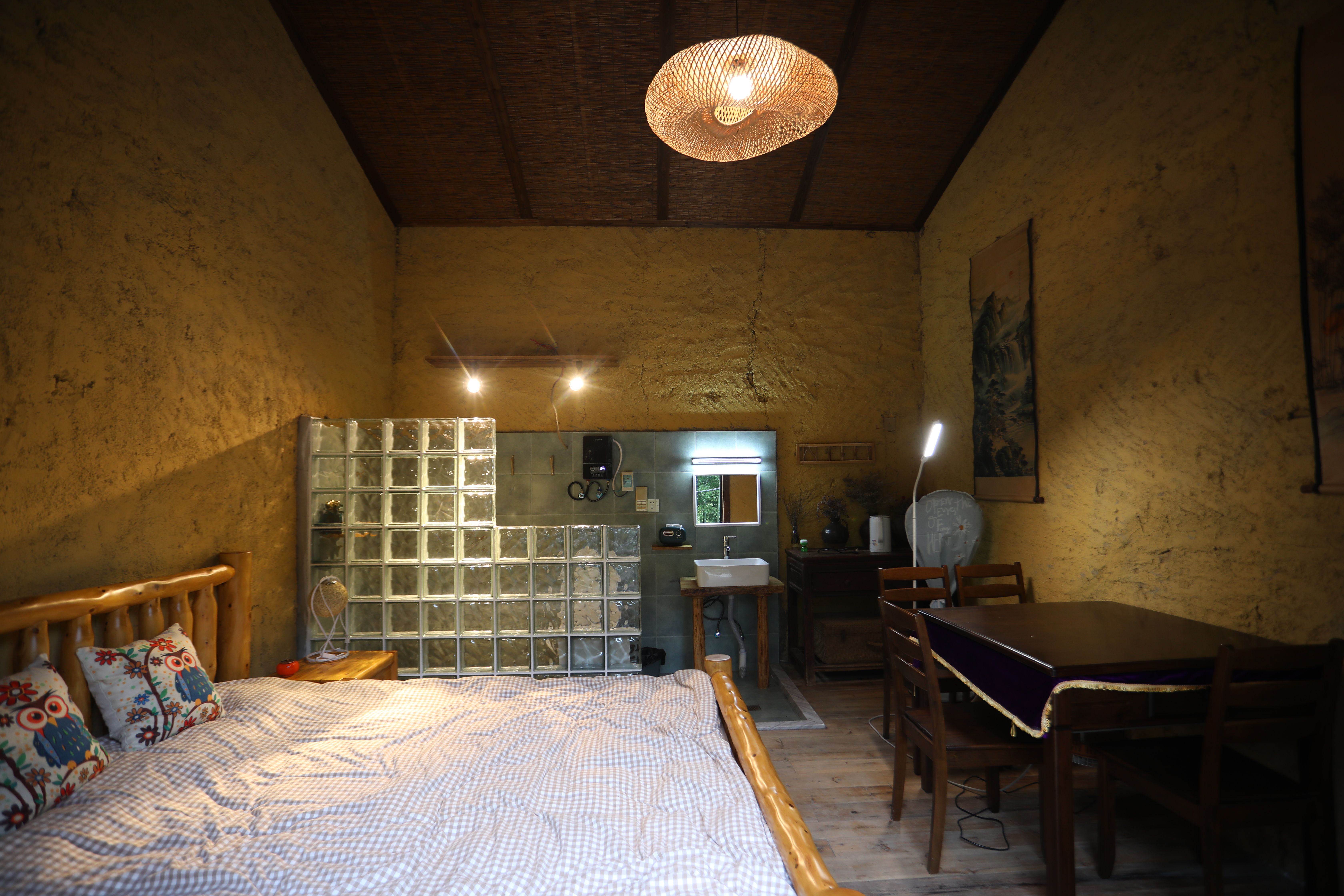 民宿是一座黄墙青瓦的夯土房,面积约200㎡,4室2厅1厨5卫,配备一个中式农家小院。