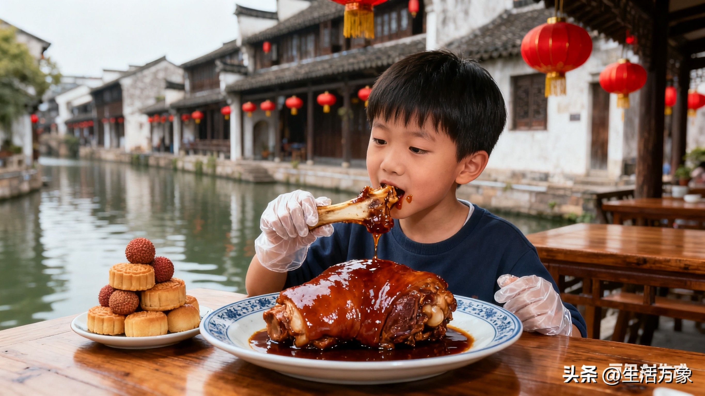 逛累了,就去祠外的东坡里商业水街找吃的。这里没有千篇一律的网红小吃,只有苏东坡偏爱的“眉州味道”:用他发明的“慢火细炖”做法煮的东坡肘子,皮糯肉嫩,孩子能抱着骨头啃得满脸酱汁;还有清甜的龙眼酥,咬开时掉渣的酥皮里裹着果肉,像把眉山的秋天咬进了嘴里。坐在临窗的小桌前,看穿汉服的姑娘提着灯笼走过,孩子会突然说:“原来苏东坡每天都过这么有意思的日子!”
