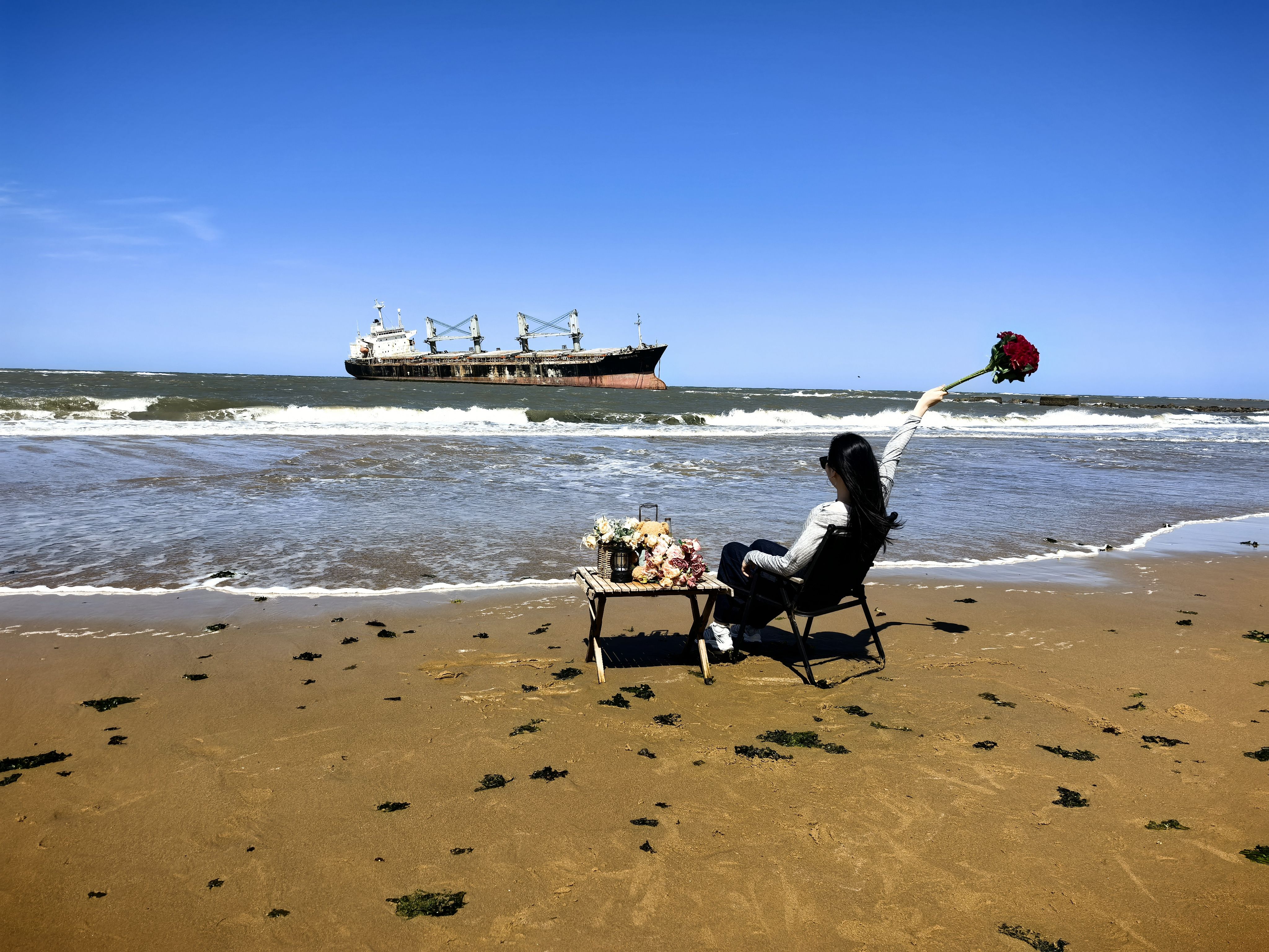 一艘大船,因意外驶入这片沙滩搁浅,完成了它的航行使命,却成就了众多年轻人的奔赴地。
