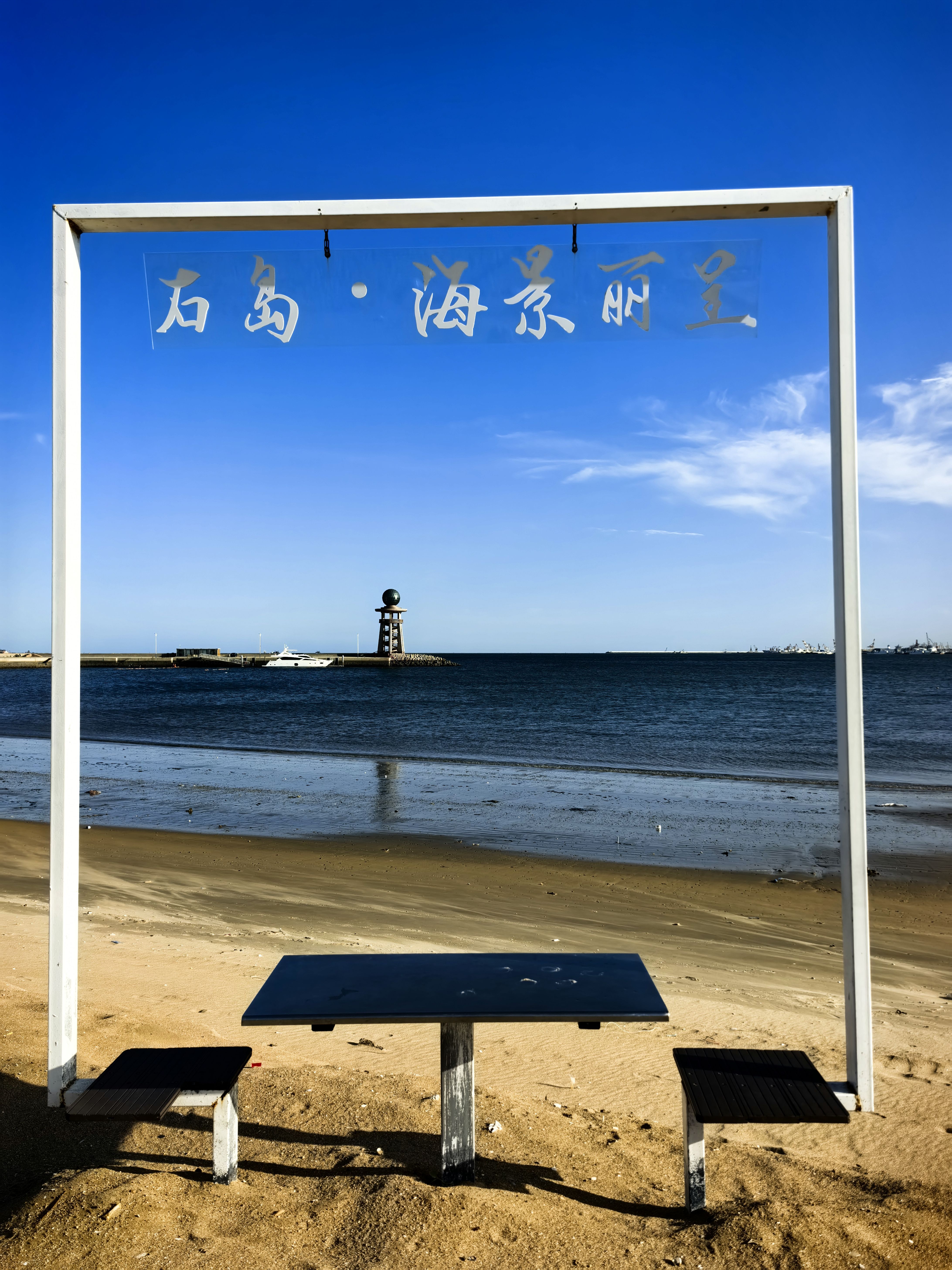 参观完渔港,返回赤山海景丽呈酒店,该酒店位于石岛湾畔,拥有绝美私享海滩,走出酒店后门,即可直面金色沙滩和蔚蓝大海。