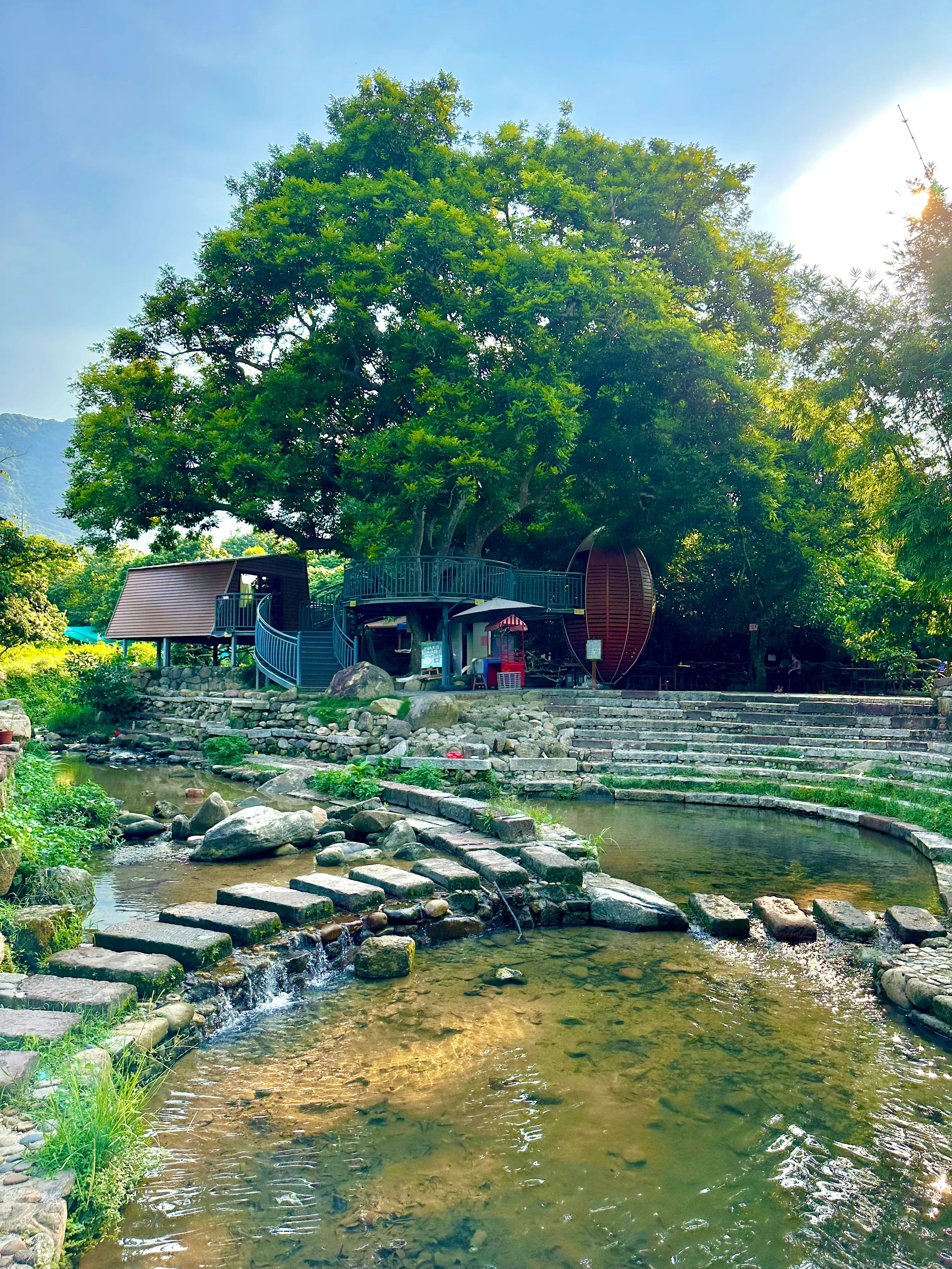 溪流很长,贯穿整个小镇,石头把小溪自然分为一个个小池子,清凉又清澈,水里有很多小鱼,可以溯溪、玩水、捉鱼。
