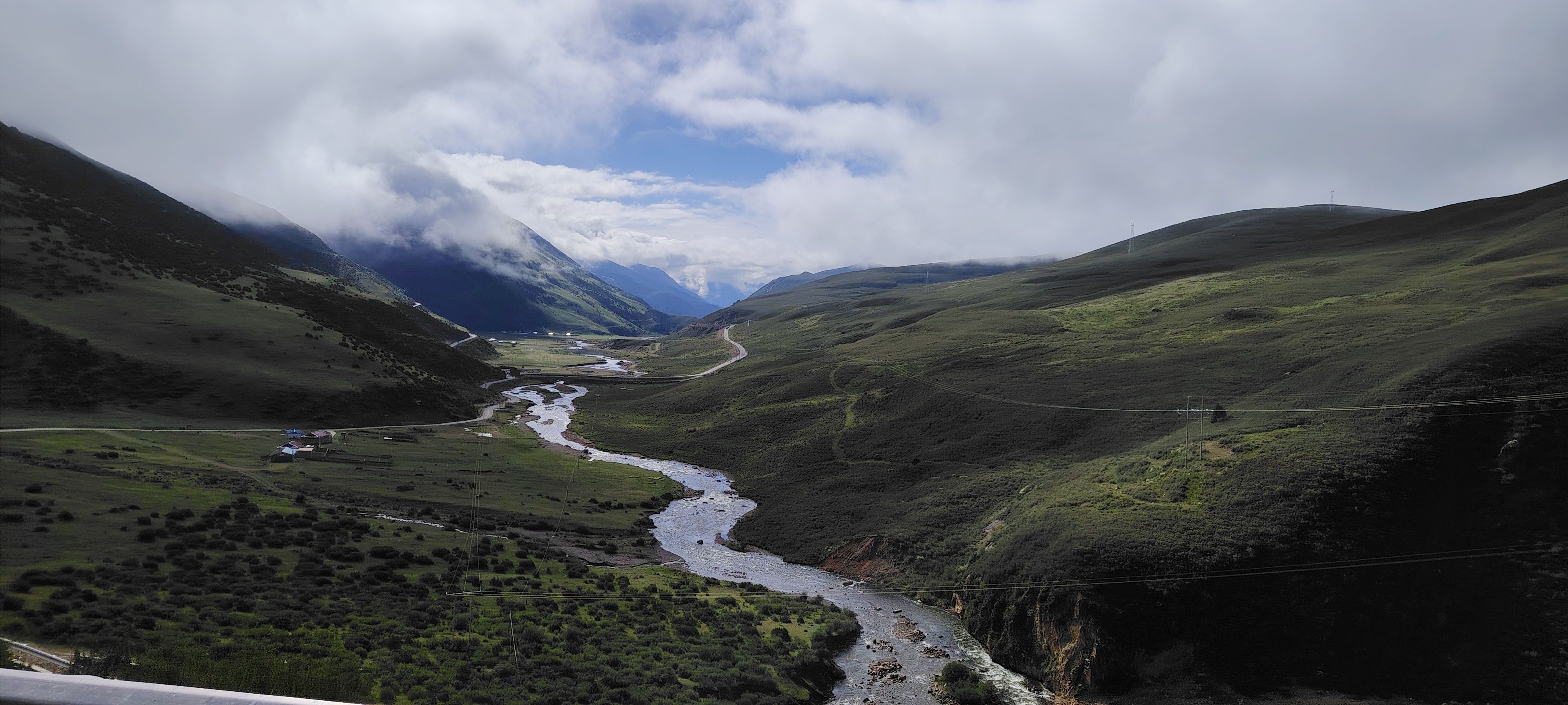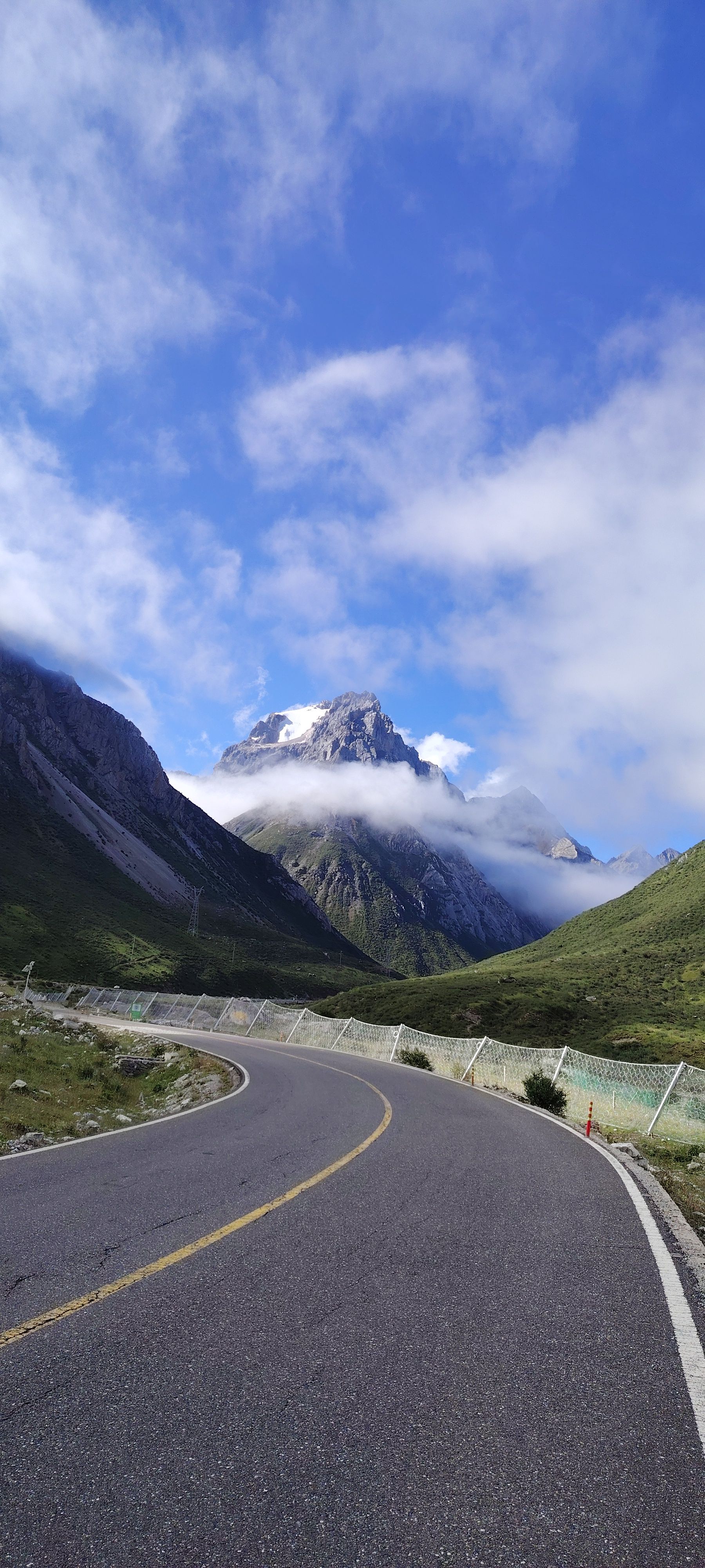 早上的雾大,把太阳与大地隔绝。云雾形态瞬息万变,时而云雾缠腰,时而云雾罩顶,在云缠雾绕中,不时有雪山穿透过云雾,映入我们的眼帘,车越爬越高,雾越来越重,最后我们也一头钻进了雾中,直到穿进一个隧道,才把浓雾甩到了山那边。