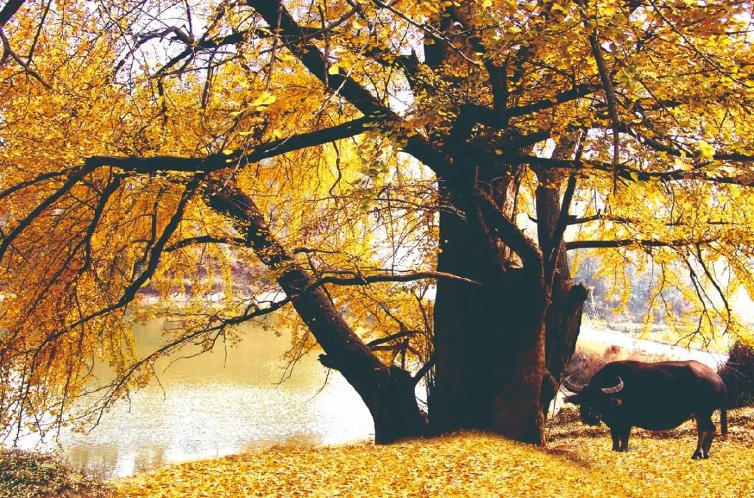 金黄的银杏叶或于枝头映衬蓝天,或散落一地装点地面。穿行十里画廊,犹如行走在秋天的童话里,是秋季最值得打卡的观赏地之一。