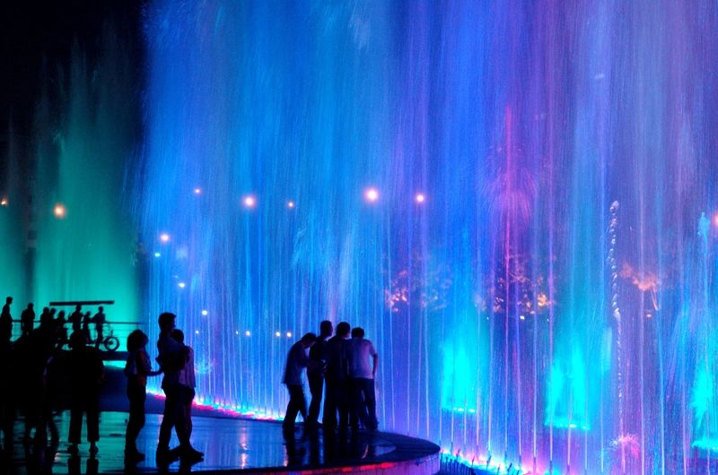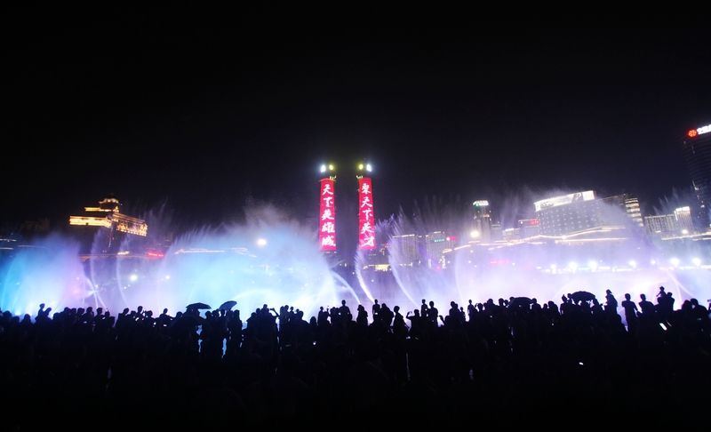 最后是红谷滩秋水广场的喷泉。它是亚洲最大的音乐喷泉群之一,主喷高度可达128米。每晚19:30和20:30各有一场15分钟的免费表演,伴随着音乐,喷泉变幻出千姿百态,时而像银蛇舞动,时而如烟花绽放,灯光交相辉映,如梦似幻,为南昌的夜晚增添了独特的魅力。