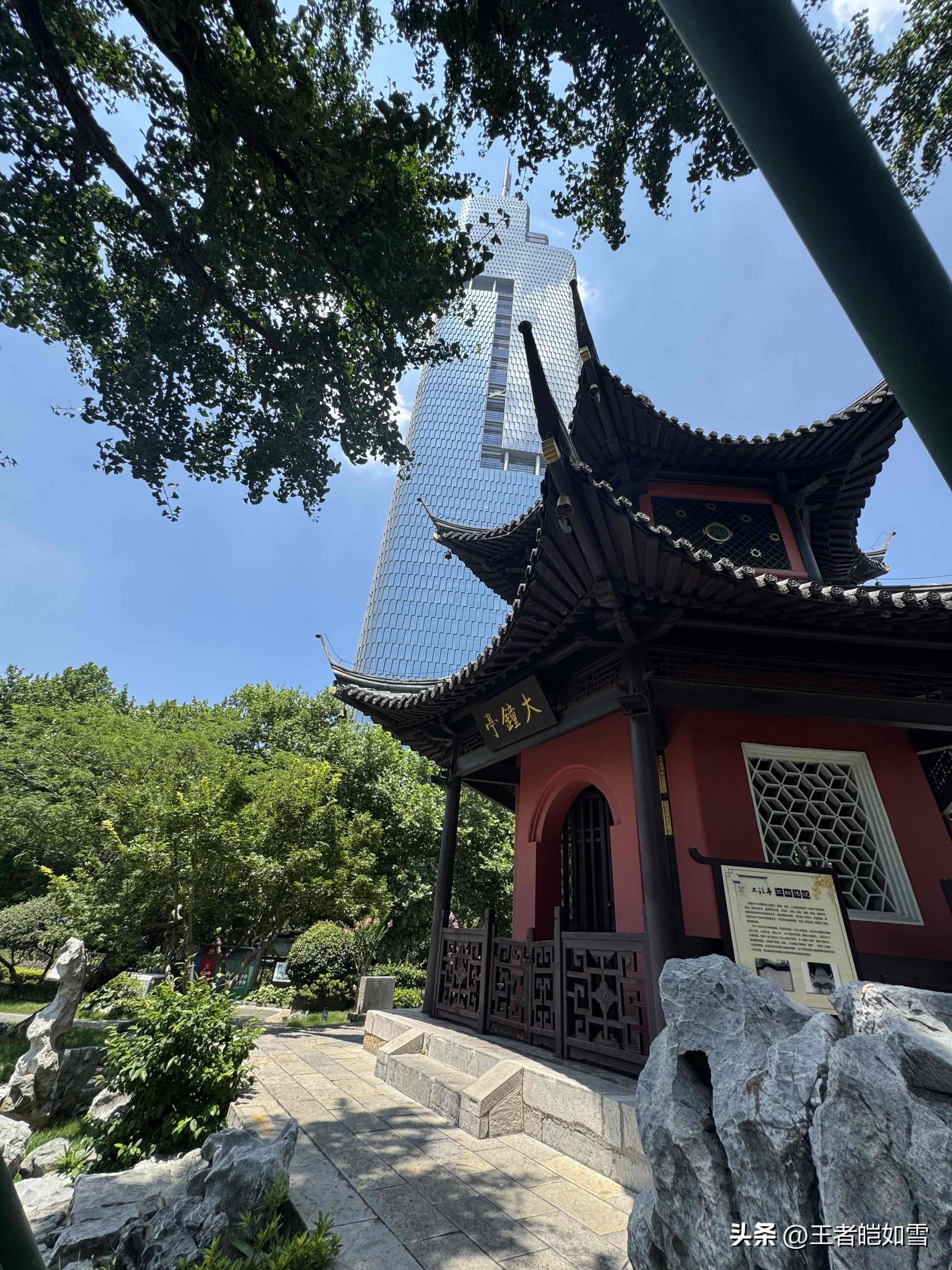 在南京鼓楼广场东北,江苏第一高楼—— 紫峰大厦的对面,繁忙的中央路旁,藏着一座承载六百年历史的小众景点—— 大钟亭公园。说这座公园小众,是因为外地游客大多不知它的存在而本地人也鲜会光顾——它小到大妈们无法跳广场舞也无太多美景可供游客欣赏。今天我也是在它四年前完成改造提升后的首次打卡。(图1、图7)