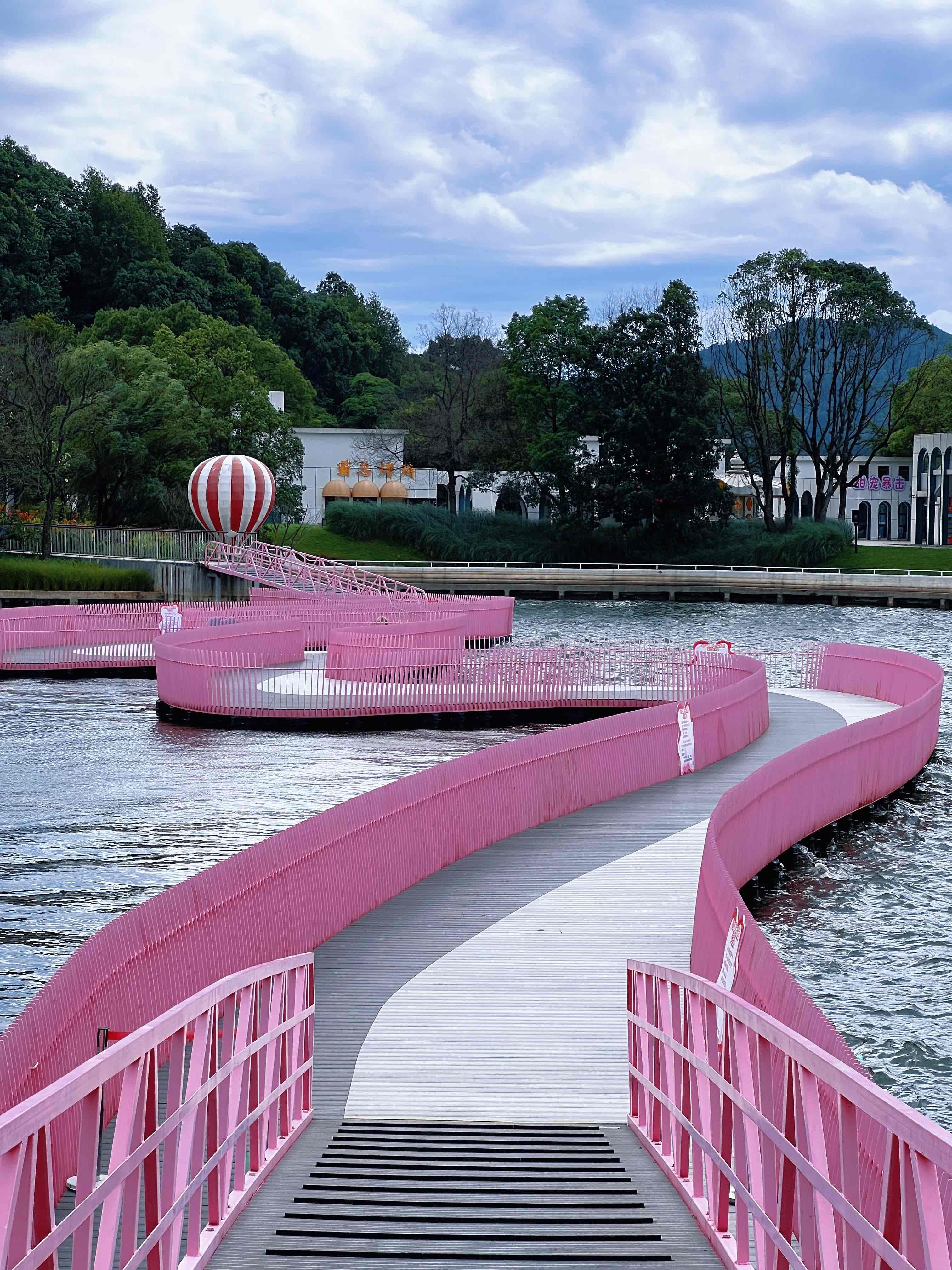 喜欢拍照的一定要去爱情岛,不仅有礼堂和旋转木马,还有沿途的粉色水浮桥也是一大特色,粉色房子真的很少女~