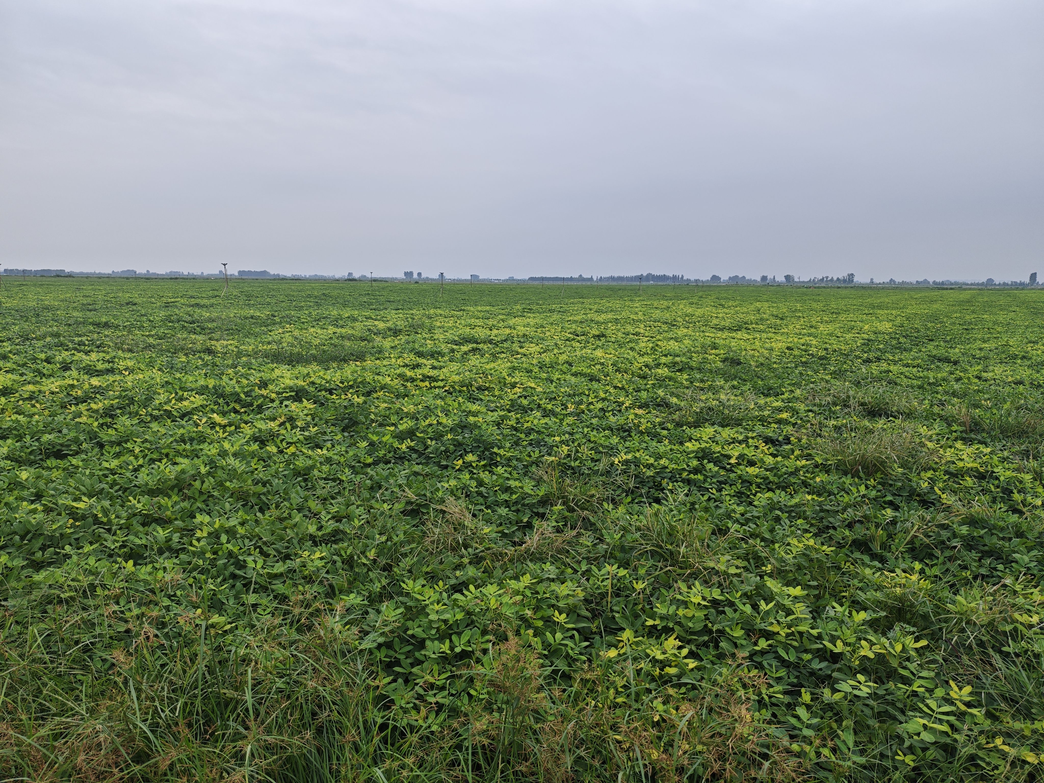 这些农耕户各分包300亩、600和1000亩不等地块,种花生,玉米,红薯等作物,秋作物收了种小麦,一年两熟耕作模式。现正值中秋时节,即将成熟的玉米花生绿油油,一眼望不到边,玉米硕大的棒子斜插秆上,花生果藏于地下,如连棵拔出,数十个荚果缠绕于主根与须根。