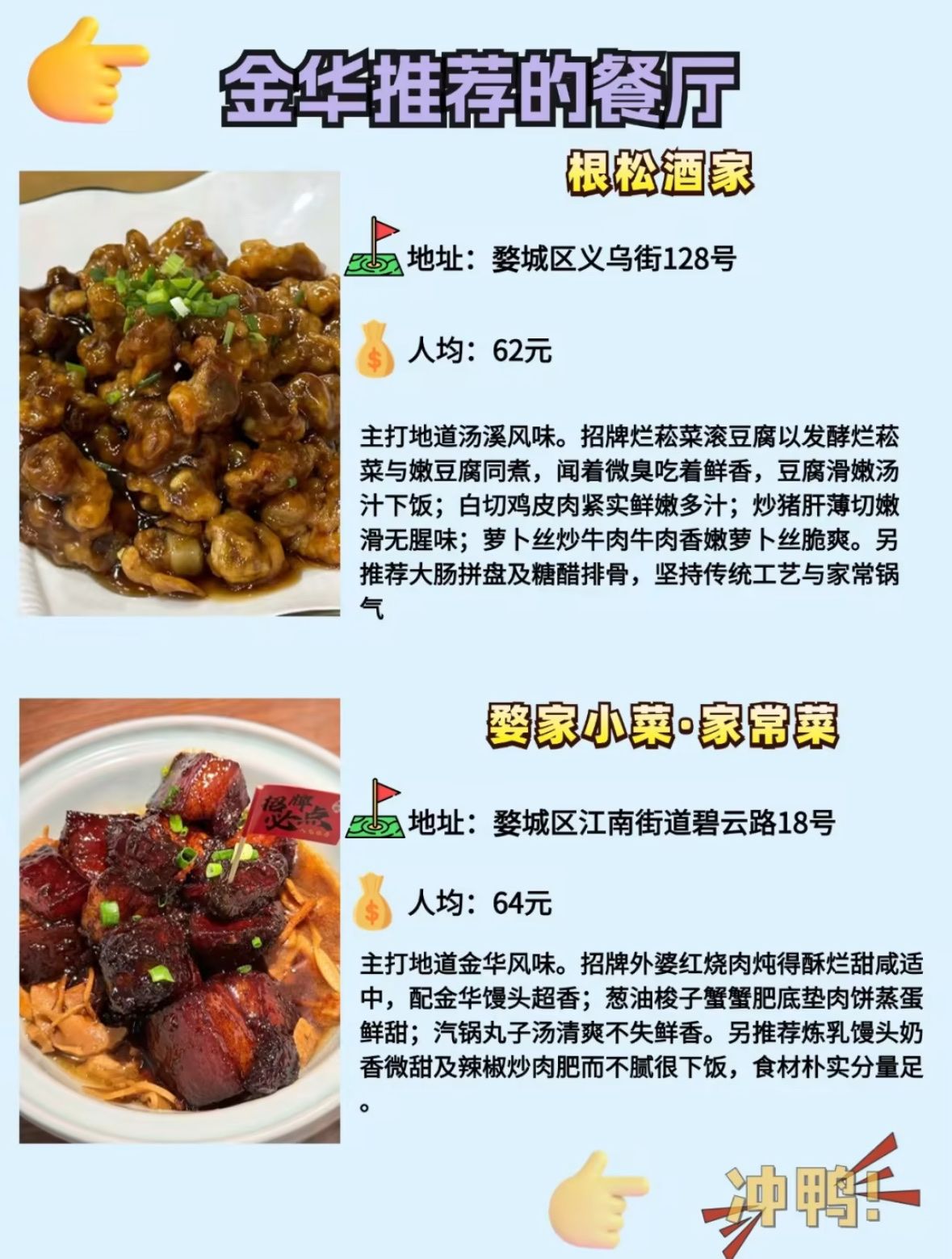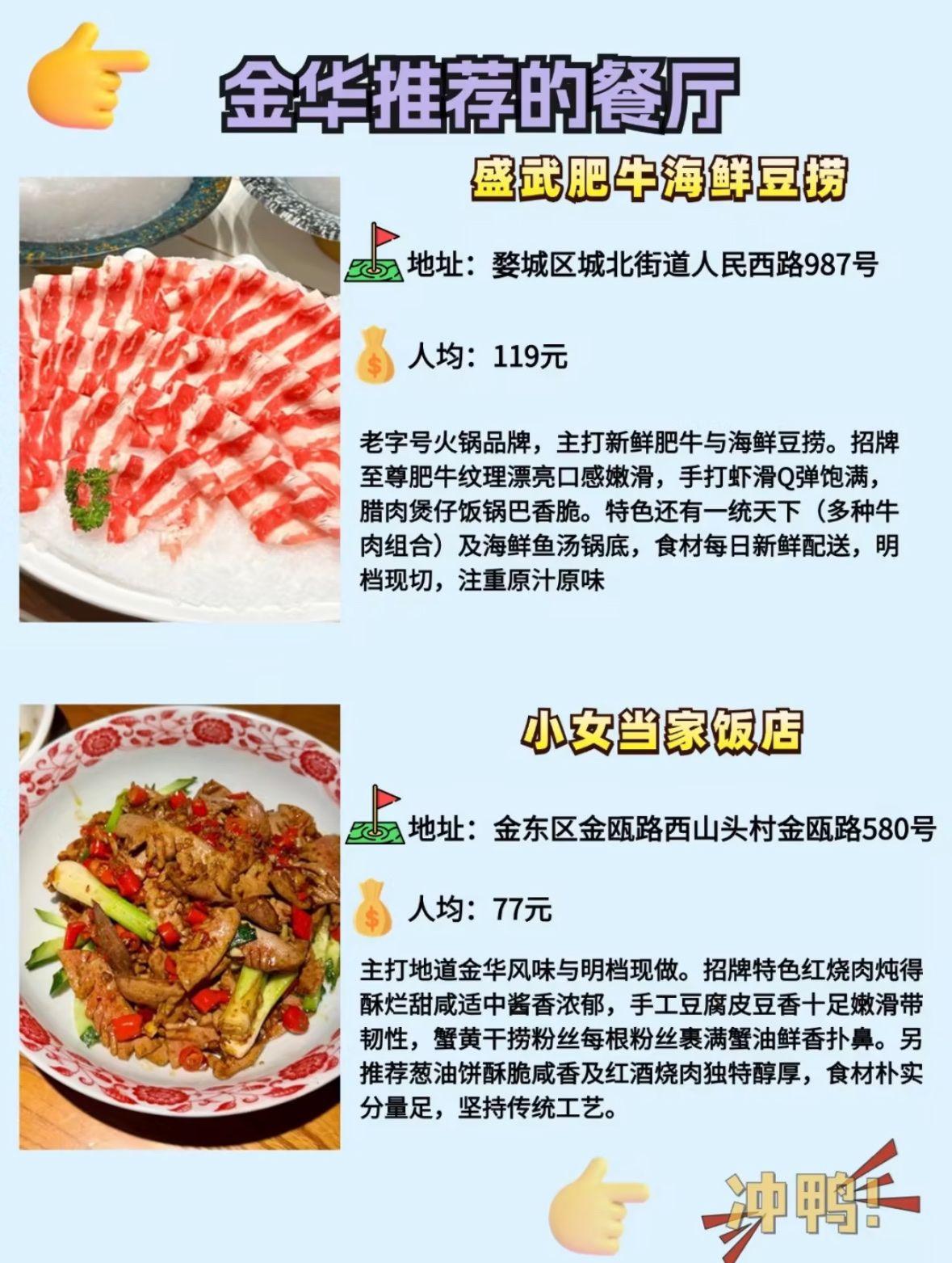 来金华,让味蕾先行,让美食成为你记忆中最美好的部分! #金华美食 #萍姐火锅 #婺家小菜 #盛武肥牛 #小女当家 #双华小笼包 #根松酒家