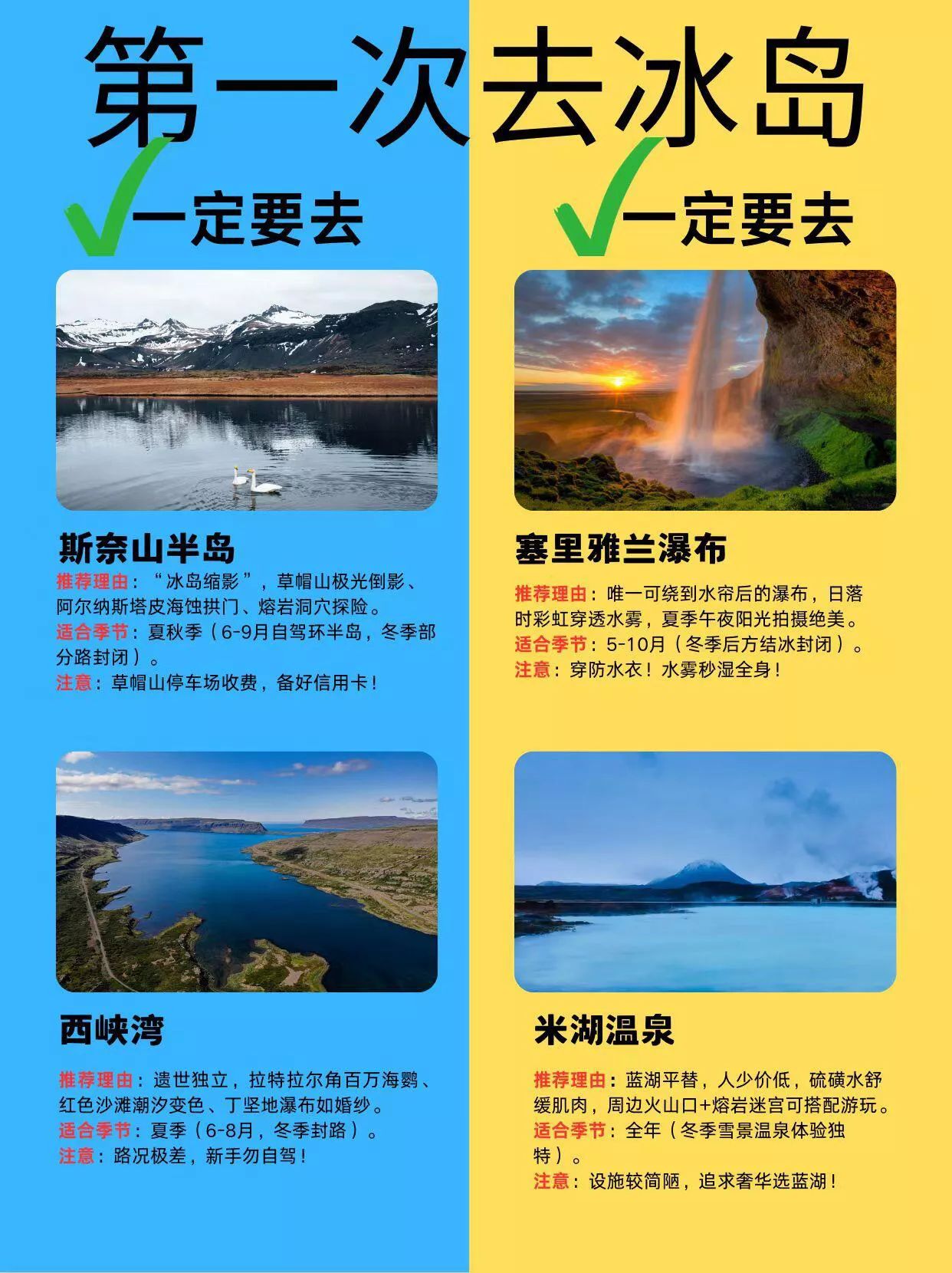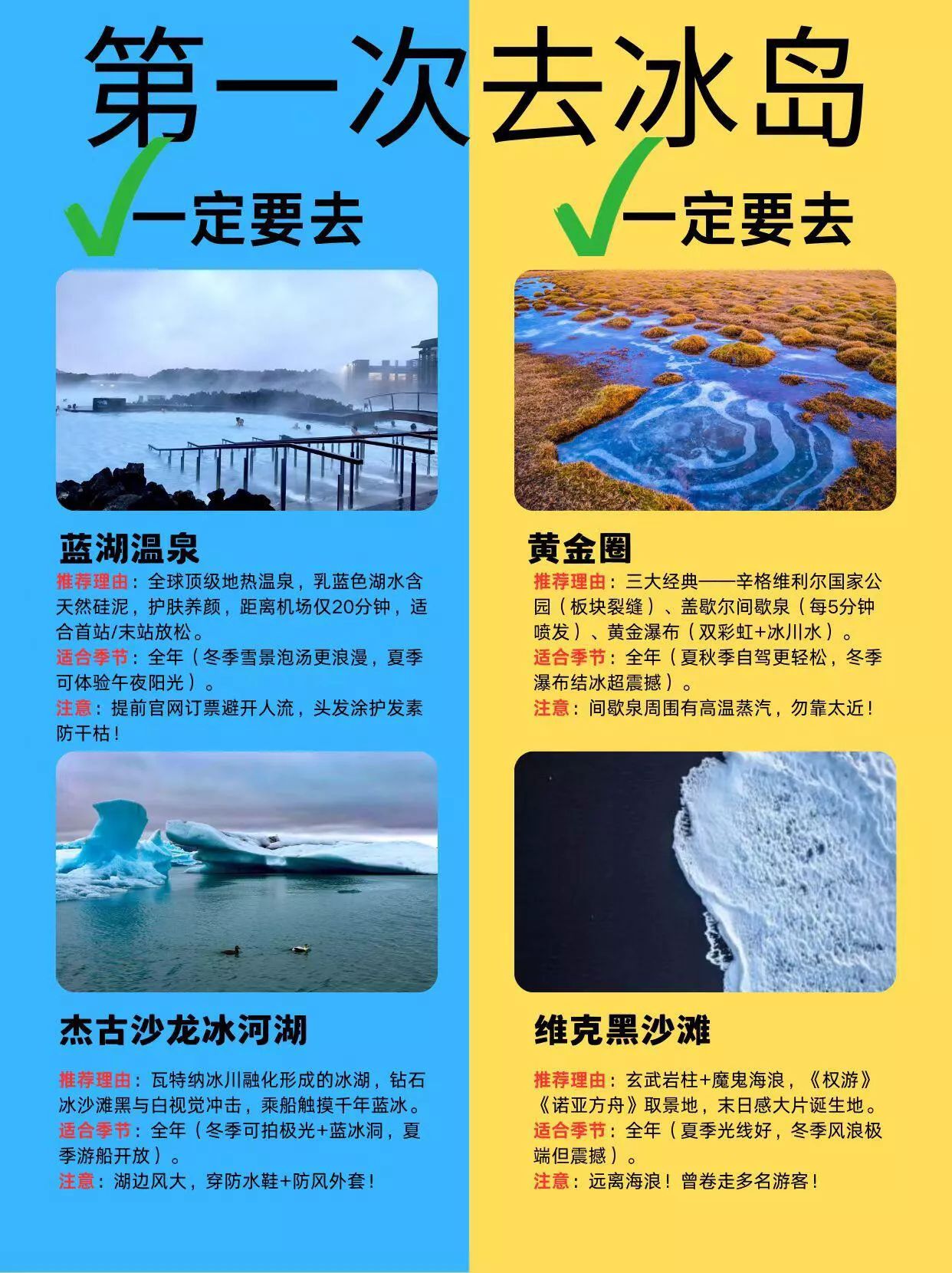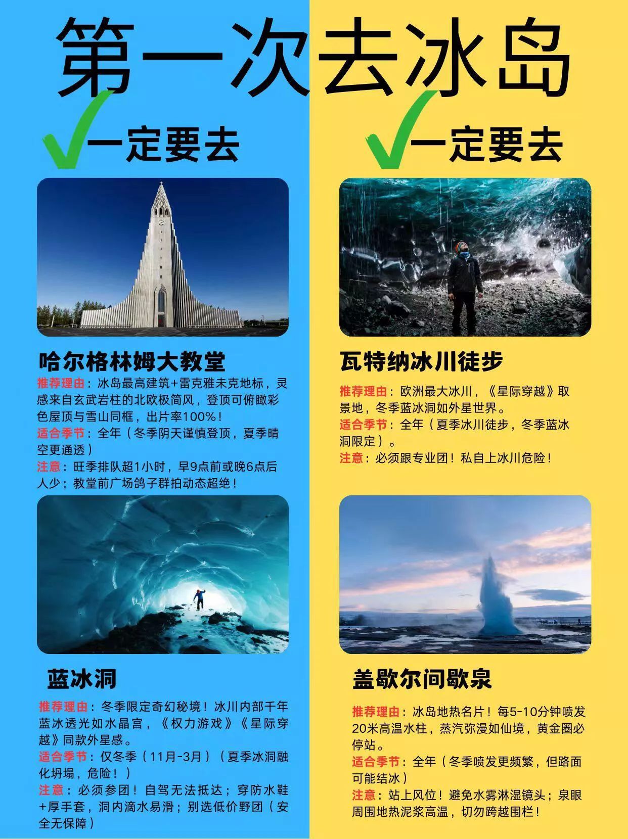 #冰岛旅行指南# 冰岛必去景点可不少。辛格维利尔国家公园是世界最古老民主议会会址,还被《权力的游戏》取景。黄金瀑布宽2500米,落差50米,很壮观。盖歇尔间歇泉每隔几分钟喷发一次,水柱20米高。南岸的塞利雅兰瀑布又高又美,斯科加瀑布落差60米。斯奈山半岛的阿尔纳斯塔皮海崖是小渔村边的美景。教会山是完美圆锥形。雷克雅未克的哈尔格林姆教堂、HARPA音乐厅等也值得去。冬季去的话,10月到3月是极光最佳观赏期。不过冬季路况复杂,自驾风险高,跟团游更安全,保暖装备也得带齐。#冰岛旅游搭子# #挪威冰岛旅行# #冰岛穷游攻略# #丹吉尔旅游# #埃里温旅行# #罗瓦涅米旅游# #哈麦德旅游世界# #洞爷湖旅行# #冰岛旅行线路# #佩妮达岛旅行# #丹绒士拔旅游# #弗罗里达旅游# #世界旅游地理# #马略卡旅游攻略# #马代旅游攻略# #英国白崖旅行# #北欧景点门票# #康沃尔旅游攻略# #冰岛异世界旅行# #乌鲁鲁旅游# #赞那度旅行# #高山旅行攻略# #北塞浦路斯旅游# #哈儿旅游# #热那亚旅行# #基洛纳旅行# #宫古岛旅行# #曼古旅行# #冰岛旅行指南# #冰岛旅行线路# #乌布旅行攻略# #冰岛异世界旅行# #但尼丁旅游攻略# #冰岛旅游搭子# #冰岛穷游攻略# #乌鲁鲁旅游# #冰岛旅行日记# #挪威冰岛旅行#