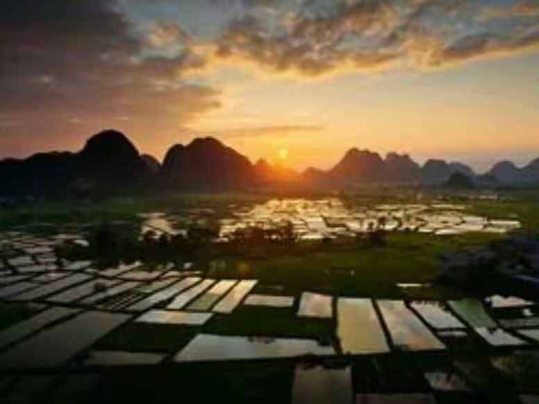 夕阳西下时,我们登上观鸟台。湿地在暮色中展现出另一番风貌:归巢的鸟儿成群飞过,在水面投下流动的剪影;远处的峰林在晚霞中若隐若现,宛如一幅徐徐展开的水墨长卷。老秦打开手机,展示"数字湿地"系统,候鸟的迁徙路线与古代商道在卫星图上奇妙地重合。