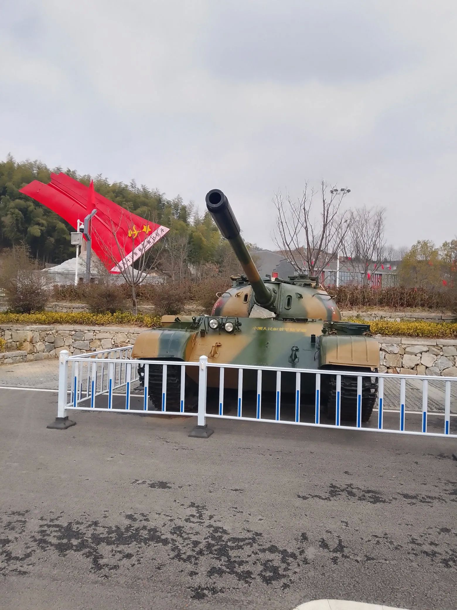 临近晌午,我终于抵达了魂牵梦绕的陶家河长征公园广场。广场中央,一座大型英雄石雕拔地而起,在阳光的照耀下熠熠生辉,周身散发着庄严肃穆的气息。旁边,坦克车、大炮、装甲车整齐排列,犹如忠诚的卫士,静静守护着这片土地,它们虽已褪去战火硝烟,却依旧散发着当年气吞山河的磅礴气势,瞬间将我拉回到那段波澜壮阔的革命岁月。
