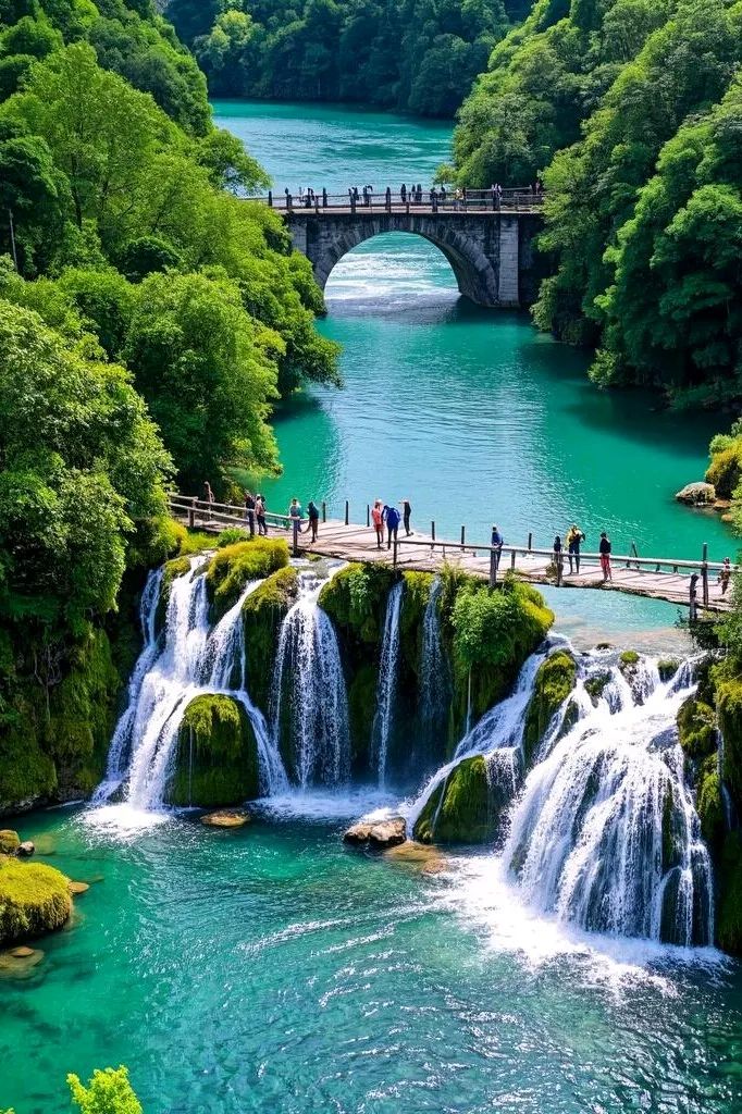 贵州荔波小七孔:它被誉为上帝遗落在人间的绿宝石,如果人生中只有一次领略山河的机会,一定要把它留给荔波。小七孔景区内有清澈的溪流、壮观的瀑布、奇特的喀斯特地貌。碧绿的潭水、飞流直下的瀑布,与周围的青山绿树相互映衬,构成了一幅绝美的山水画卷。漫步在小七孔的古桥上,仿佛穿越了时光,感受着大自然的神奇与美丽。