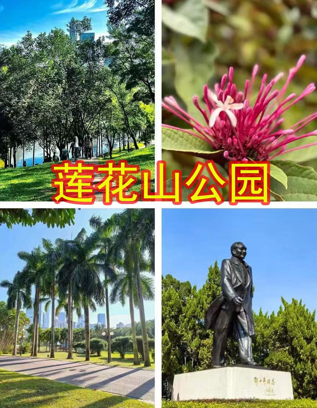 上午:先冲莲花山公园,爬到山顶,深圳的繁华景象尽收眼底,那感觉超震撼!公园附近就有面点王,各种面食小吃,让你一饱口福。
