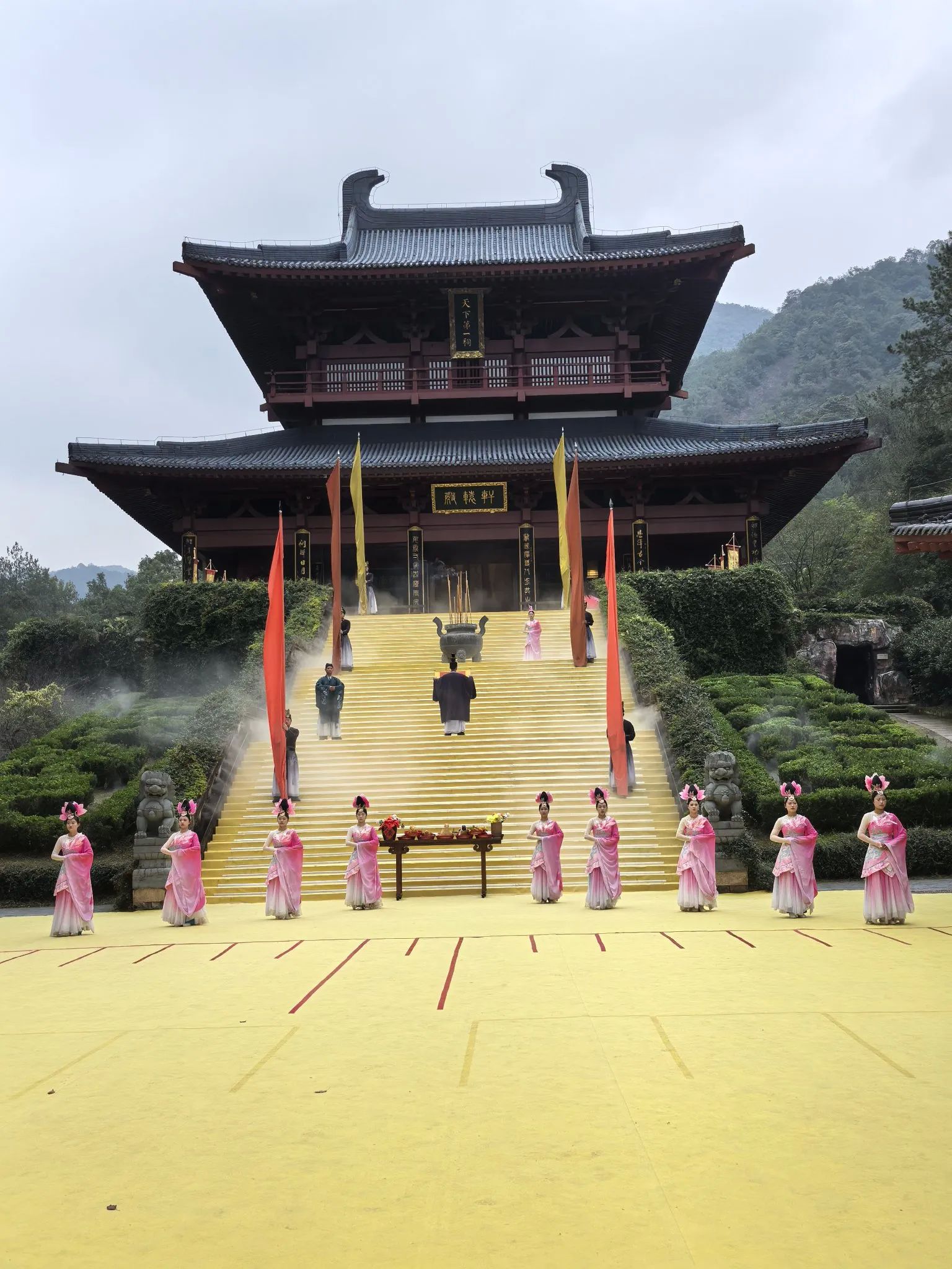 先来到仙水洞,民间流传着一种说法:仙水洗过手,金钱经常有。我们也体验了一下仙水洗手的喜悦。“拇指峰”的奇特,好奇的人们都用自己的大拇指去比对。天下第一祠的黄帝祠宇与陕西的黄帝陵遥相呼应,形成北陵南祠的格局,轩辕殿祭拜轩辕帝节目的表演,吸引大批游客注目观看。随后坐缆车登景区的顶峰,一览景区的全景,又过仙桥赏湖水山峰融为一体的美景。