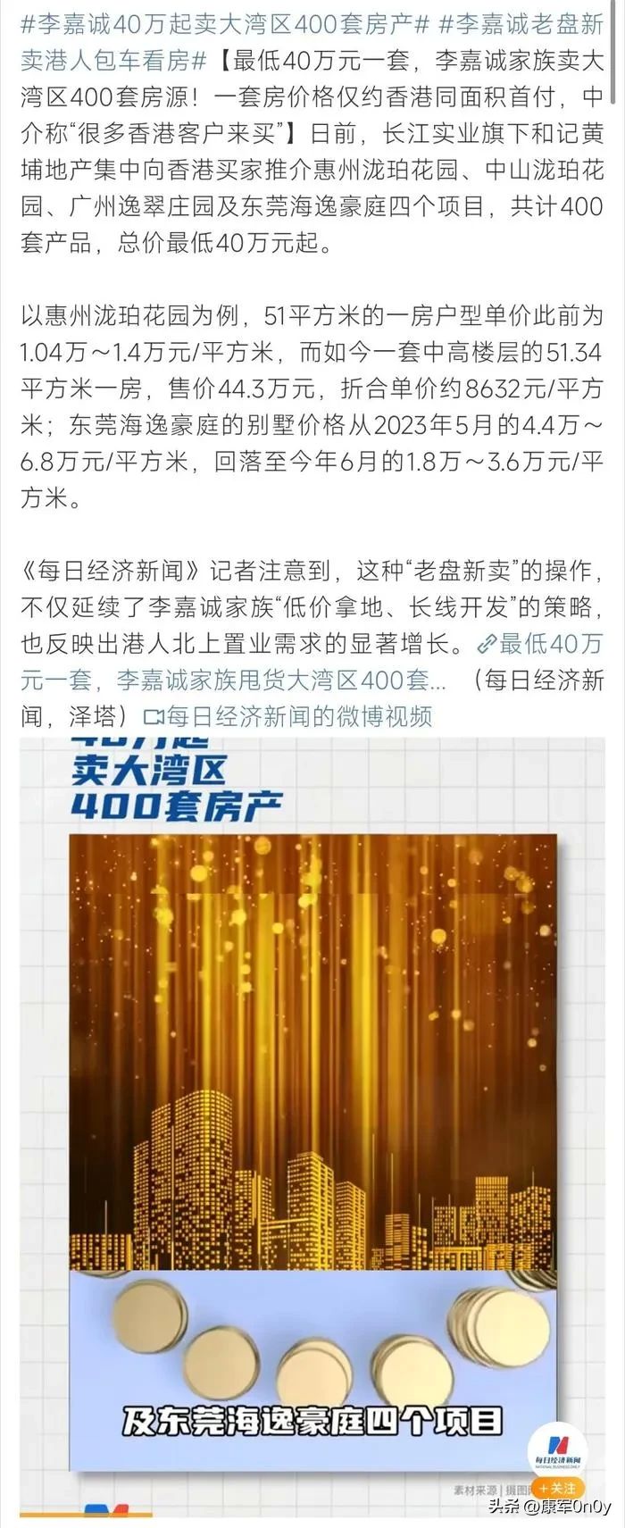 #上头条 聊热点##李嘉诚低价甩卖大湾区房产你怎么看#