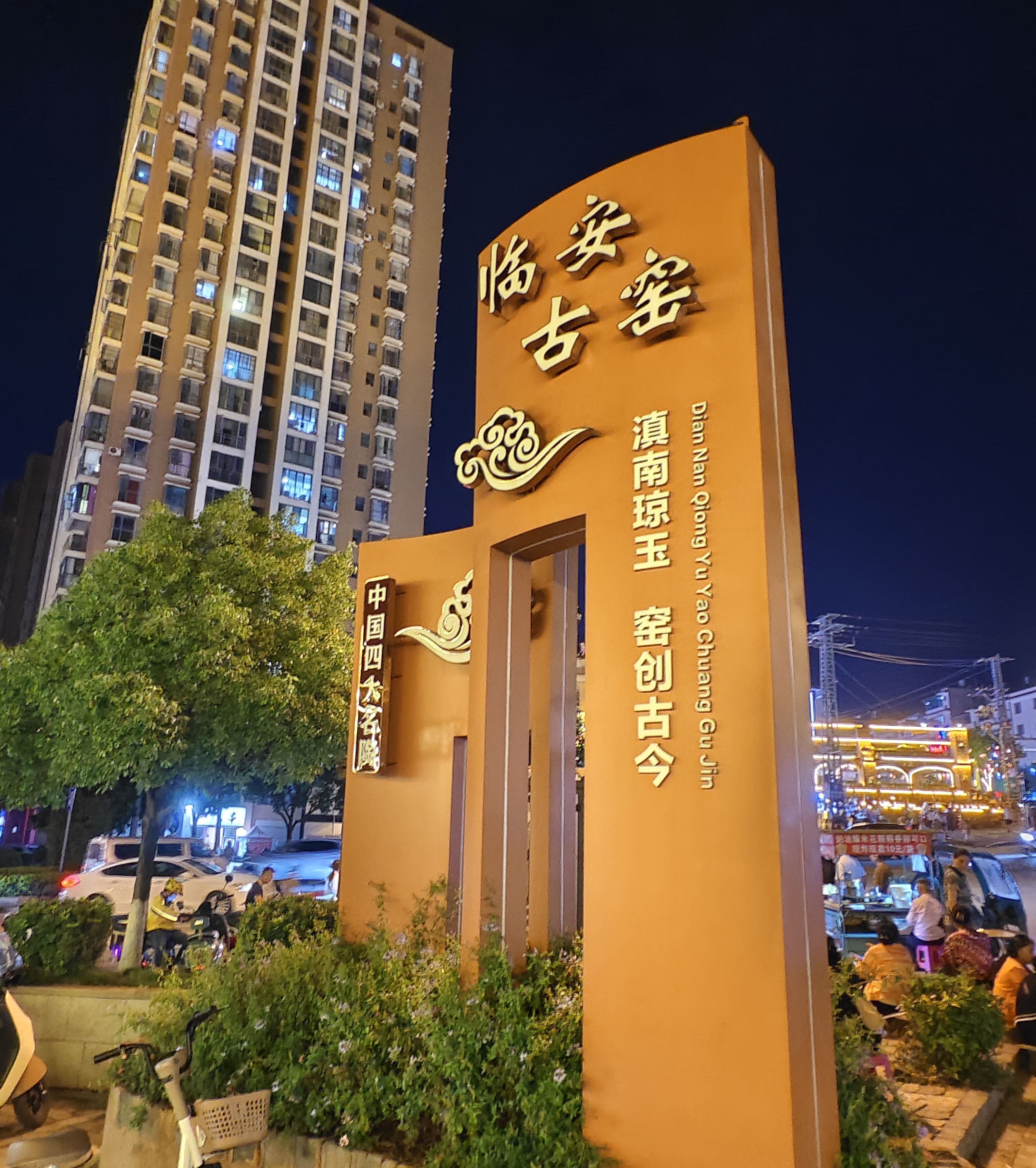 下楼在紫陶街逛了一转,有点小惊讶,一条街全是卖紫陶的,没想到有这么多。然后就开车去找烧烤吃,因为听说建水烧烤很有名。先导航去了两家网红烧烤店,没菜了,卖完了。最后在老城区的一个夜宵摊区随便找了一家,味道还行,看来网上没乱说。