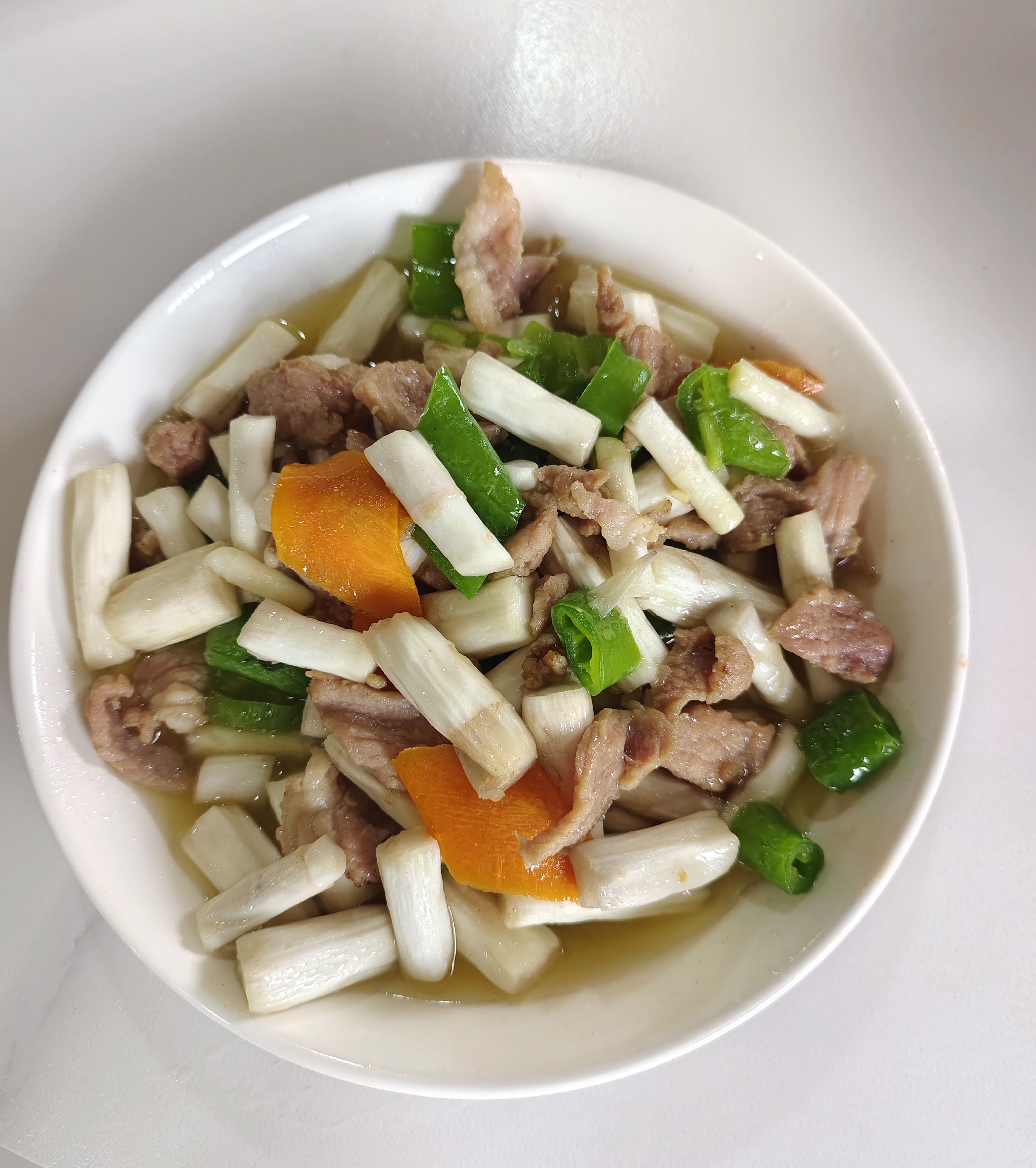 在古城里吃的午饭,专门找了一家汽锅鸡餐馆。汽祸鸡味道不错(图十二),老板推荐的另一种没记住名字的本地菜炒肉也不错(图十三),不贵,物有所值。