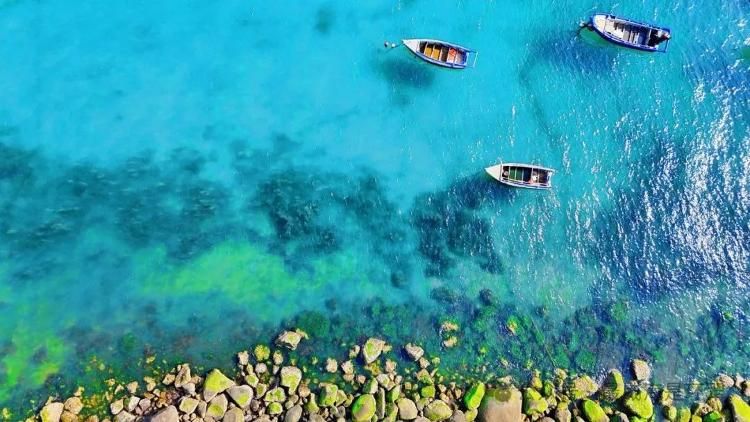 海面清透见底,海水呈现出从薄荷绿到蒂芙尼蓝再到深海钴蓝的渐变层次,阳光穿透时仿佛液态宝石在流动,堪称专属威海的极致色彩美学实验场。