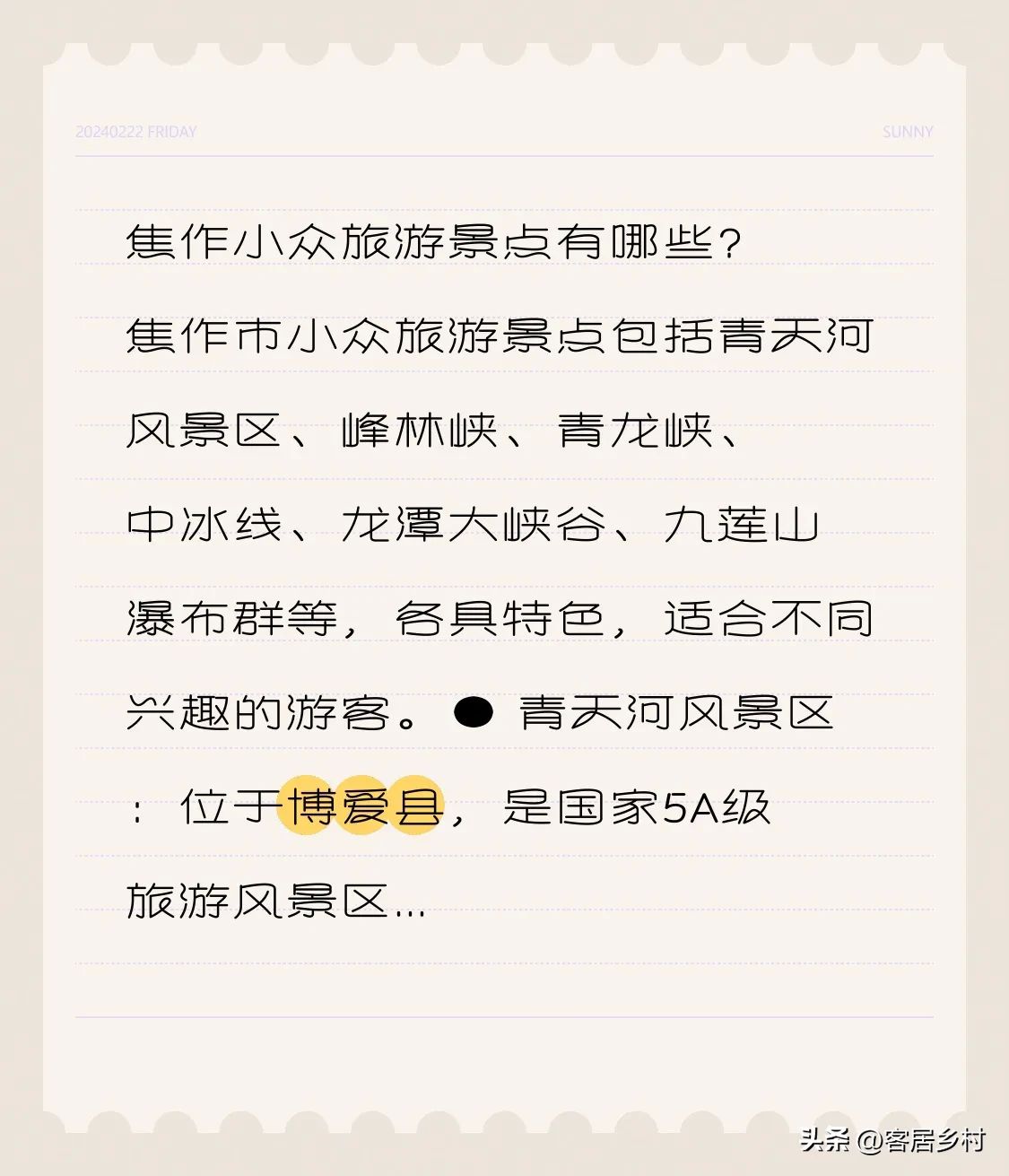 这些小众景点虽然不像云台山等知名景点那样有名气,但其独特的魅力和美景同样值得游览。建议游客提前做好攻略,合理安排行程,从而更好地领略这些景点的魅力。