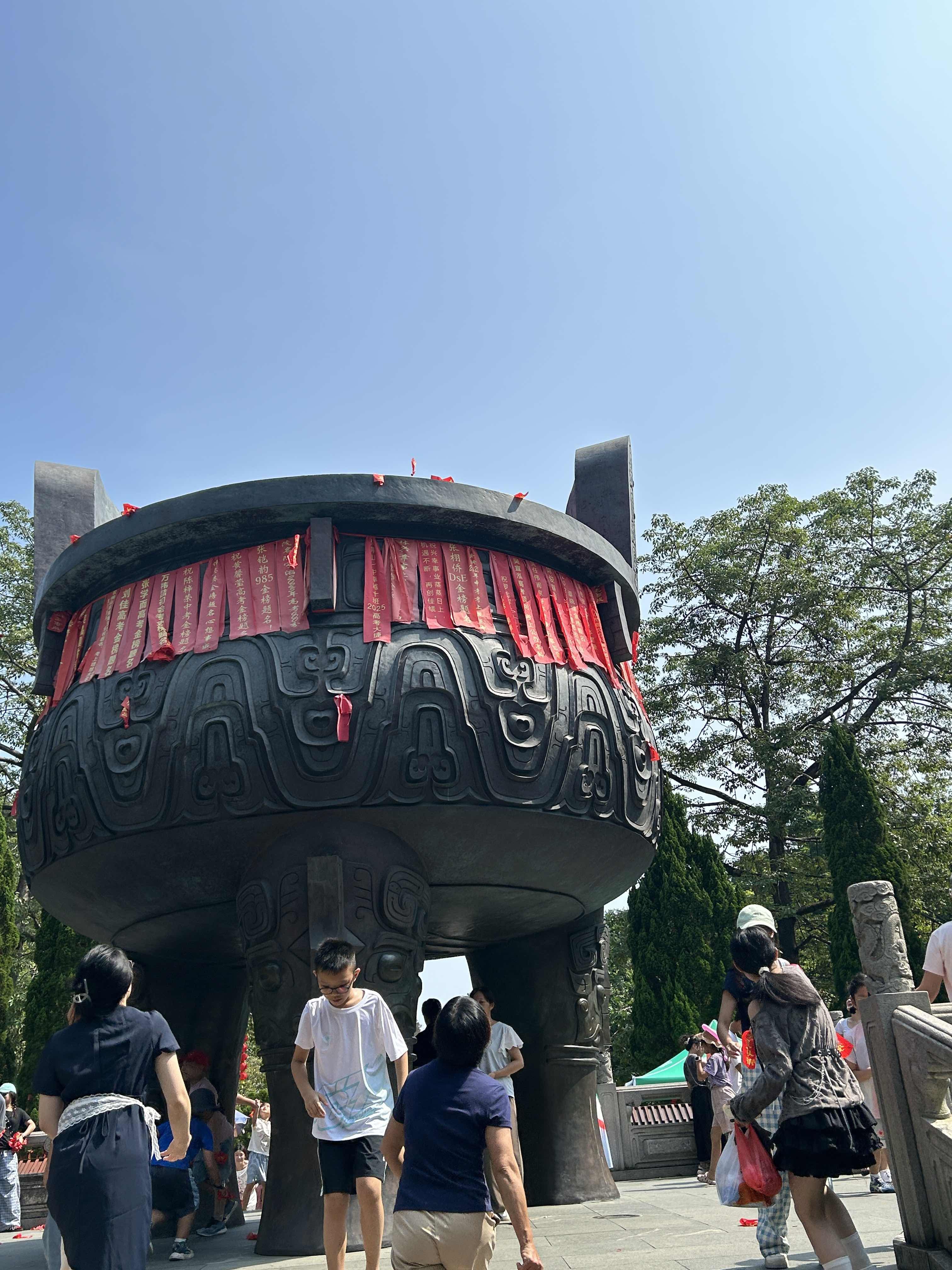 我把十只许愿球中的一只给女儿让她抛,其余九只被我全抛进了宝鼎之中。其实,把小小的许愿球抛进五六米高的宝鼎,并不太容易。