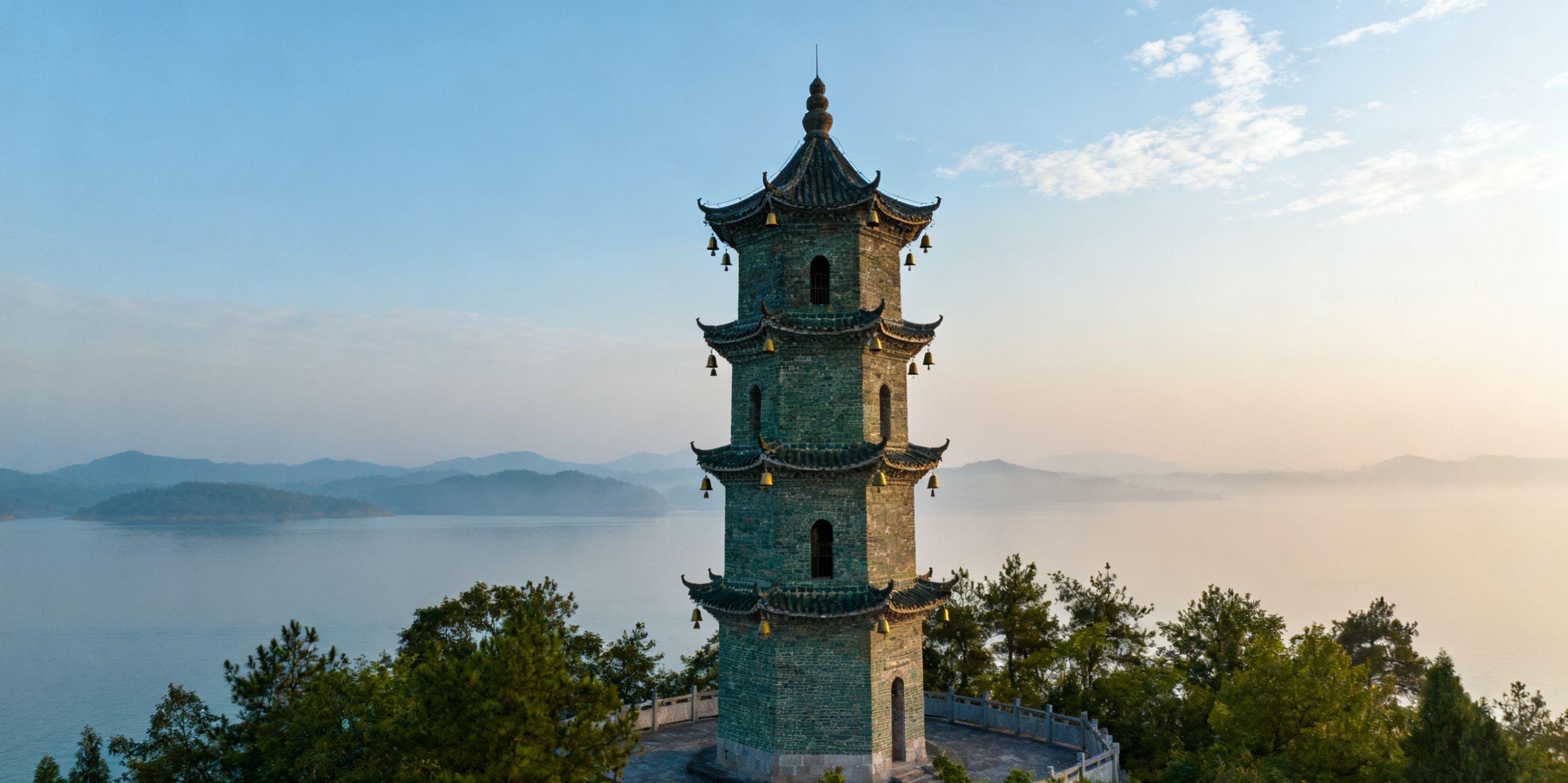 龙山塔耸立在湖边小山巅,爬上去能俯瞰整个水库,视野炸裂!