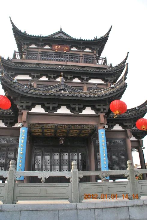 正值春节之际,我们先来到南村书堆景区,只见牌楼边布置得非常喜庆,许多游客停止脚步,在这里选择合适的角度拍摄自已的镜头,我们匆匆一顾之后,往牌楼的东边前进,来到了平湖的《九峰一揽楼》,它的正门朝向西边,正好已经开着。