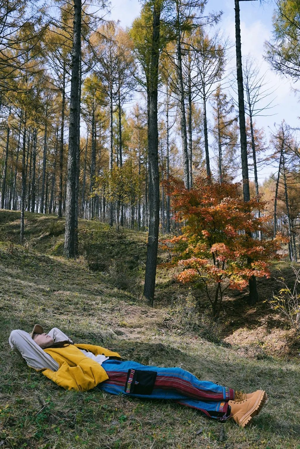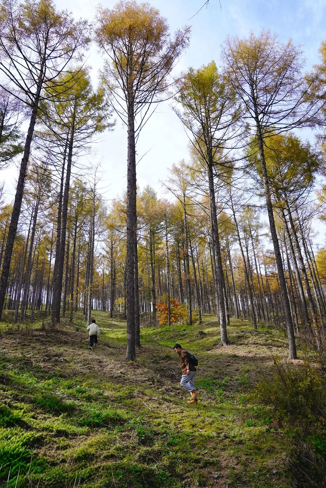 一路上,两侧是连绵的白桦林与落叶松, 像走进电影画面般治愈地势平缓,非常适合慢慢徒步, 走进森林深处,搭个帐篷、铺开野餐垫, 躺平发呆、冥想听风…… 在这里,时间仿佛也放慢了脚步, 一切都交给自然来疗愈