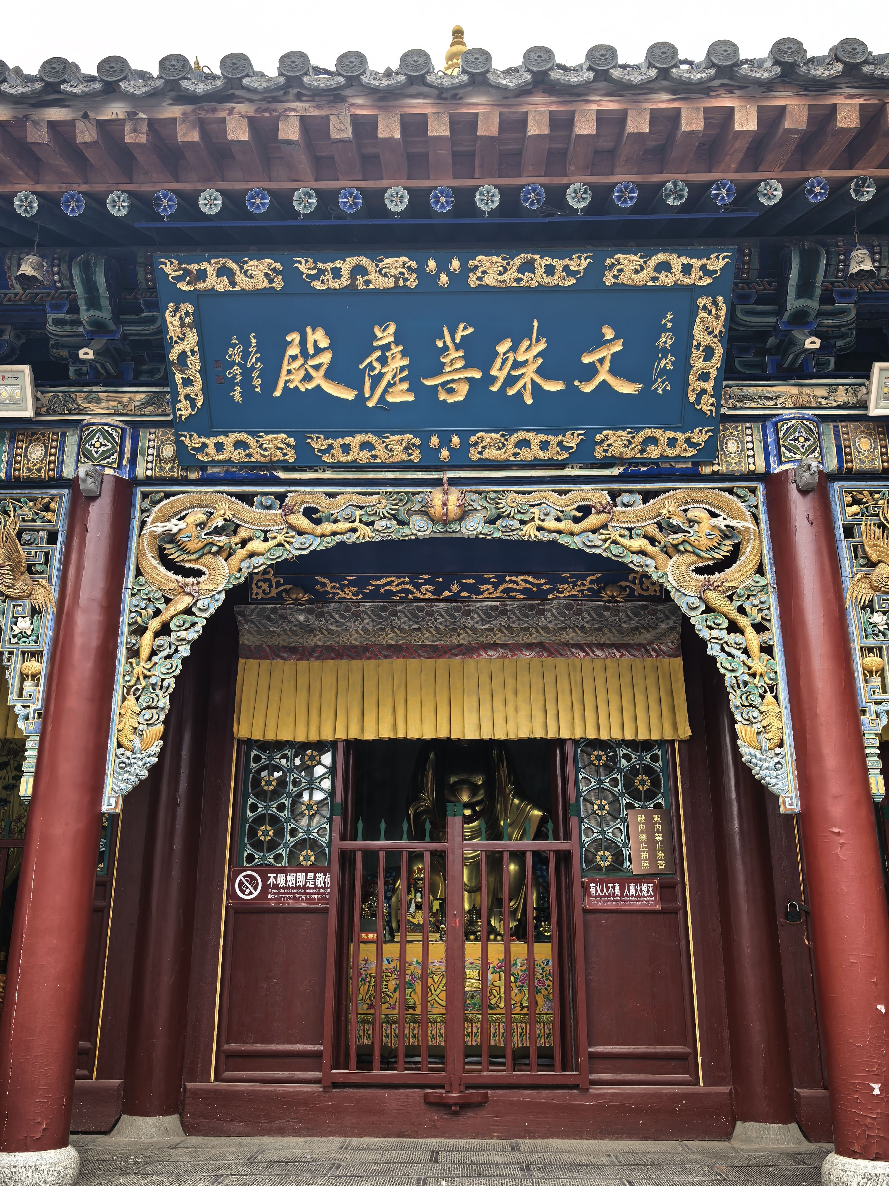 殊像寺: 参观文殊菩萨祖庭,欣赏高约9.3米的文殊菩萨塑像及五百罗汉图。