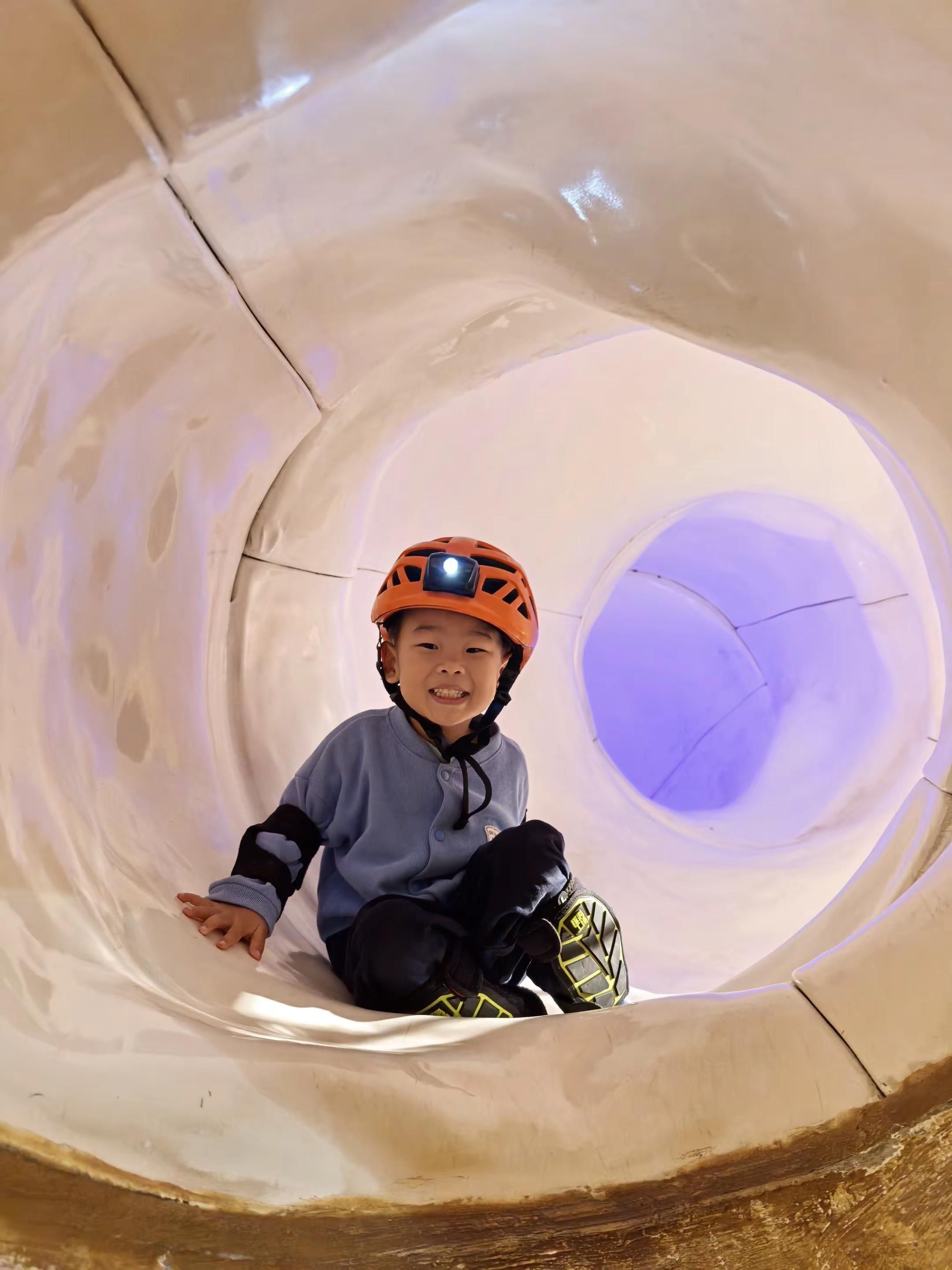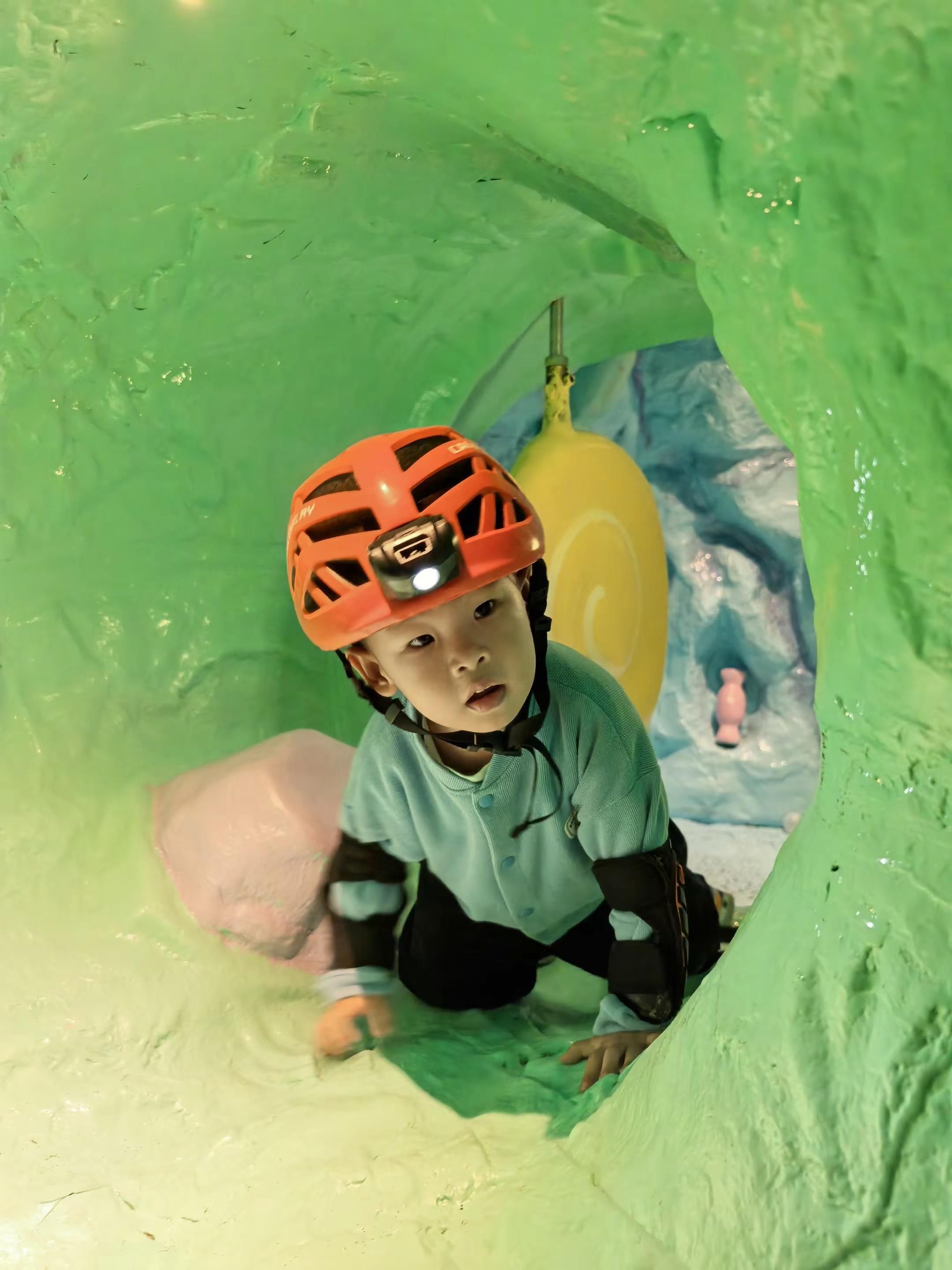 成都室内探秘 | 探洞工场太好玩啦。家有精力旺盛的小朋友,操心带他去哪消耗精力?听我的,地铁直达!就来环球中心探洞工场。既能带小朋友解锁探险乐趣,又能消耗小朋友的电量,一举两得!店铺:探洞工场(环球中心旗舰店)地址:天府大道北段1700号环球中心D区1楼外围1800㎡的超大空间,不同主题的洞线,三大分区(迷宫区、科普区、挑战区)一条竞技线,更有360°摄像头监控,小朋友在这里可以自由探索,解谜寻宝。入园会有工作人员帮忙戴装备,超有耐心的,小朋友乖乖坐着穿好装备就可以准备探险啦!一进门就开始各种哇撒(〃''〃),喀斯特岩石洞、冰川冰雪洞、火山熔岩洞、七彩洞穴,每个场景都特别真实。不同洞穴有不同任务,可以根据自己的情况(年龄段、爱好)来选择领取,完成通关后还有奖励哦。好玩又有趣,玩下来时间过得超快的。简单的探洞冒险,就锻炼了小朋友的体力、脑力和耐力,我陪着孩子大概玩了一个半小时,超开心的,下次还要再来二刷!Tips:入园需穿防滑袜,可自备也可以现场购买。4-6岁娃建议家长陪同!窄洞和陡坡还有黑黑的环境对小朋友来说有点挑战,需要大人陪同。尽量穿长袖长裤,爬行时间多,长袖长裤能更好的保护自己。女孩子不要穿裙子哦。#成都亲子游 #国庆成都必打卡探洞主题乐园 #成都乐园 #周末遛娃 #带娃好去处