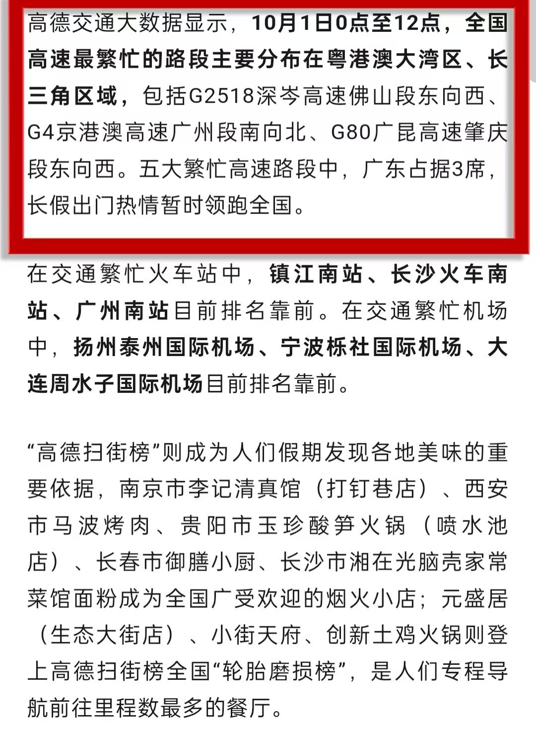 看到央视新闻和高德扫街榜联合发布的长假观察,介绍全国最繁忙的景区,居然是九寨沟,我本来还以为是西湖,还有介绍了最忙的高速路段、高速服务区,以及机场、火车站。