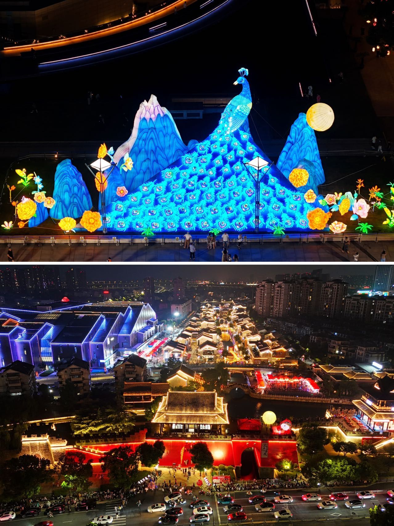 当晚重头戏从城市广场开始,千架无人机表演秀将传统中秋与现代科技完美融合。看完表演直奔迎恩门风情水街,水街流光溢彩。夜晚还可乘游船看灯光秀,在桨声灯影里感受绍兴的醉人夜色。