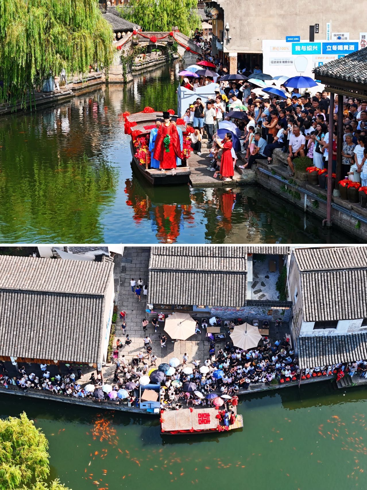 第二天深入体验黄酒文化。上午前往中国黄酒博物馆,了解这种陪伴绍兴人千年的琥珀色液体。学习品鉴黄酒的六种味道,下午前往黄酒小镇的微醺主题市集,这里还有宋韵水上婚礼表演,凤冠霞帔的新娘在乌篷船队护送下出嫁,场面颇为壮观。