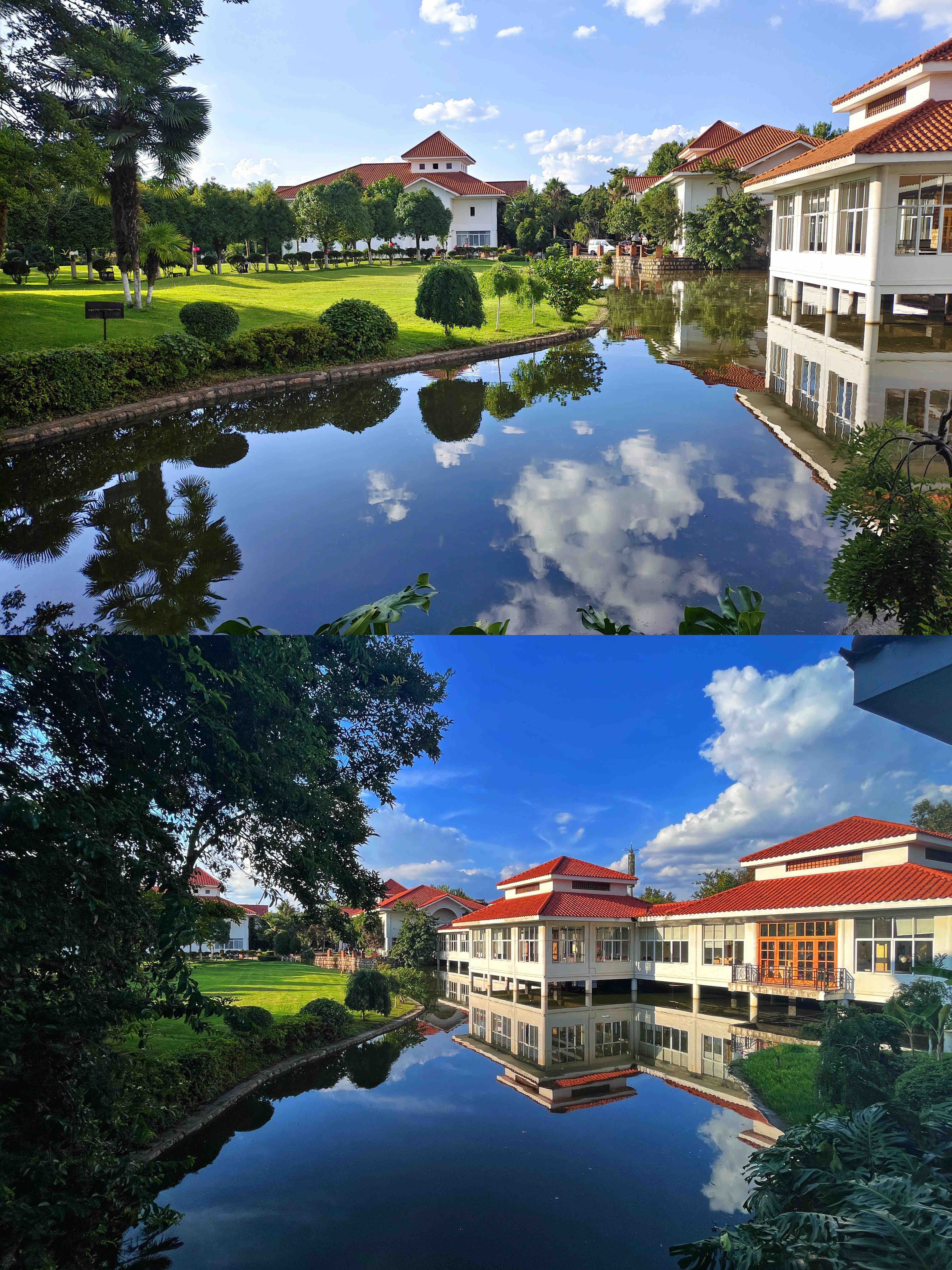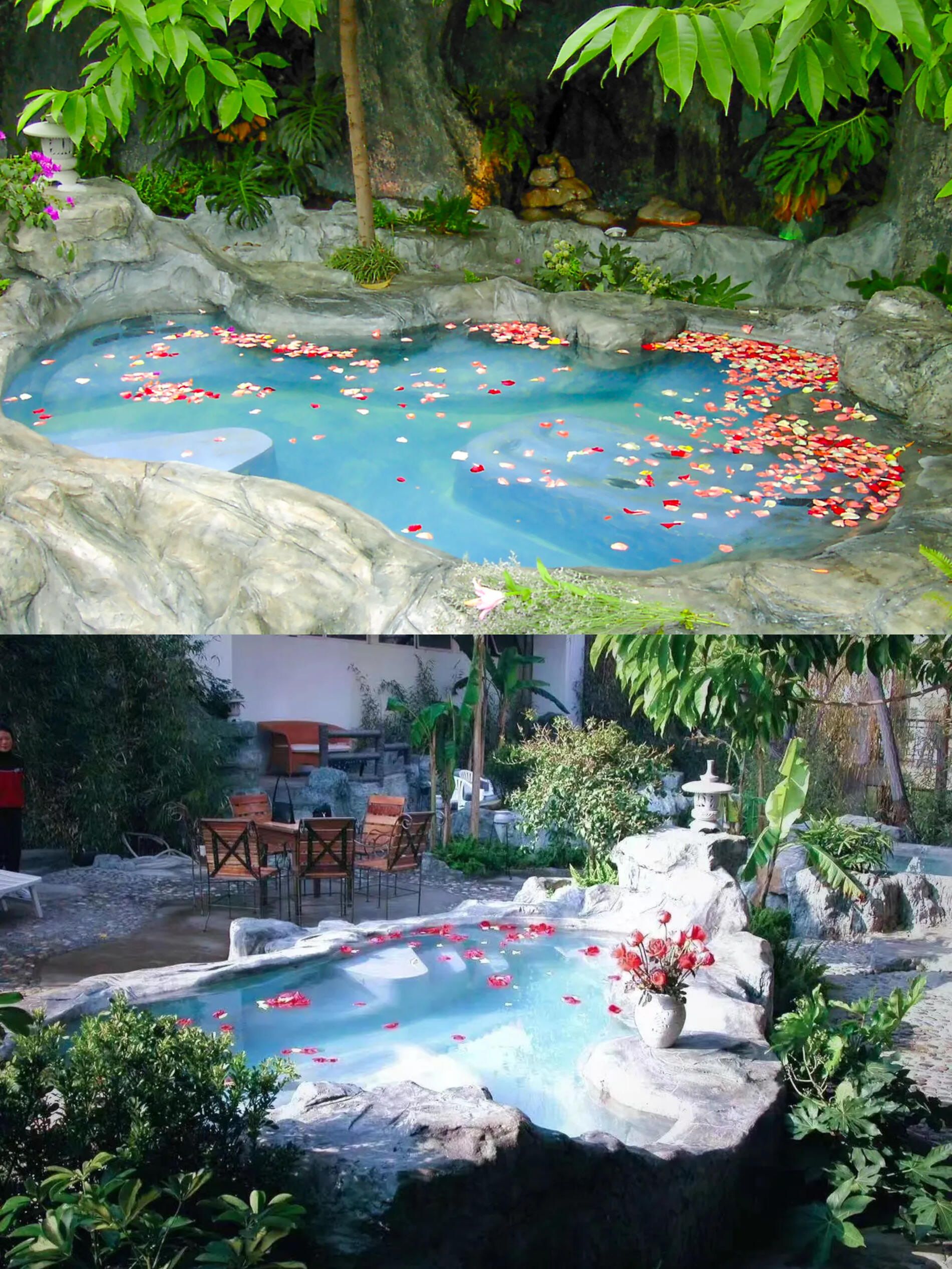 一进门就被震撼到了!17 栋泰式风格建筑群,大堂里有山水园林、瀑布小桥,鲜花常开、小鸟飞翔,曾荣获 99 中国装饰设计金奖,真的像穿越到东南亚度假。最爱那个超大后花园,成片的大树织就出浓密绿荫,阳光透过叶隙洒下细碎光斑,草坪绿油油软绵绵,躺在上面看书发呆,时光都慢下来了
