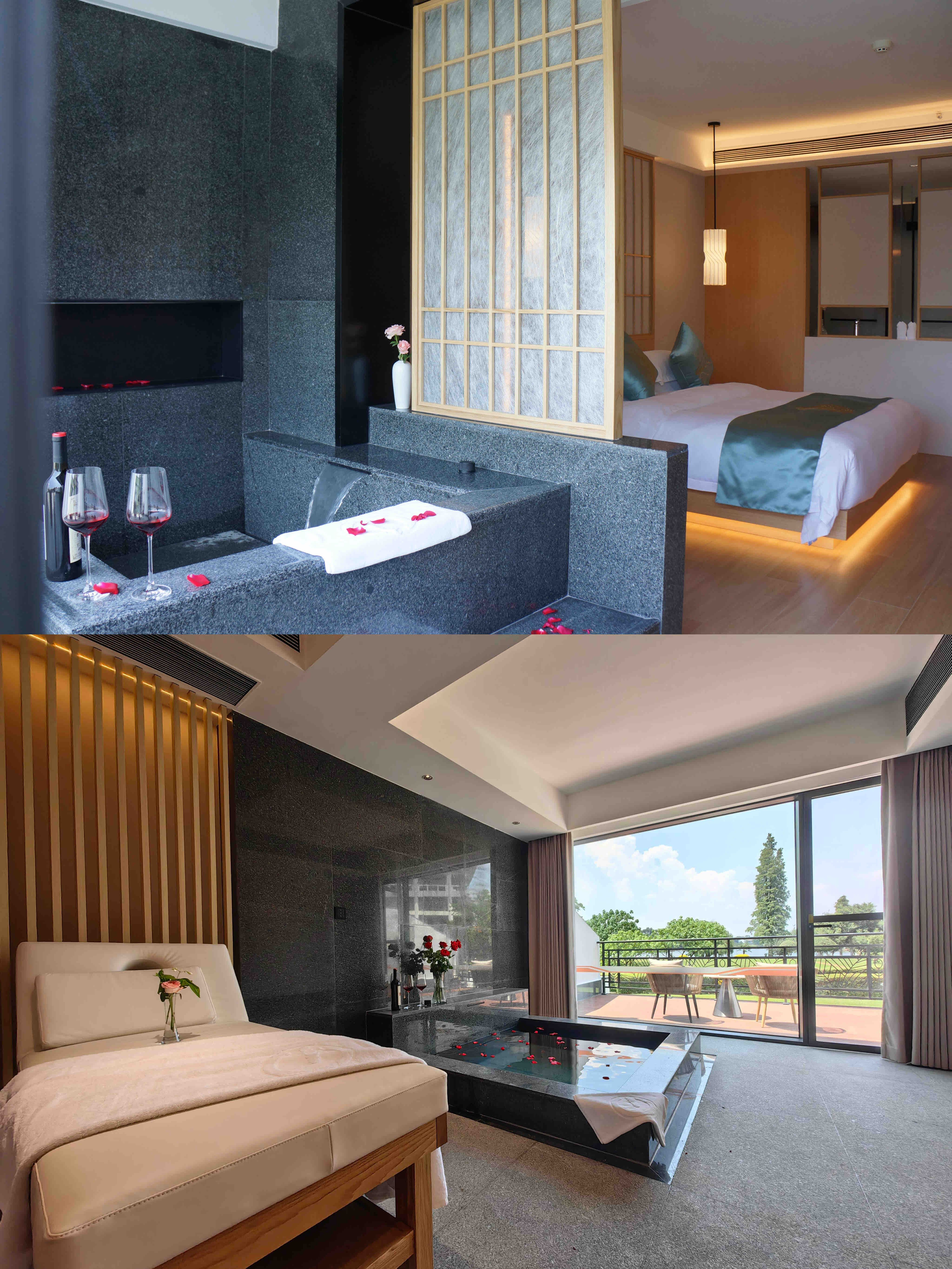 重头戏来了!部分客房自带温泉浴池,用的是天然温泉水,富含矿物质,泡完皮肤滑溜溜的~晚上一边泡汤一边欣赏美景,水汽蒸腾中远山若隐若现,所有的疲惫都被治愈了。房间设施也很贴心,干湿分离卫生间,床品舒适,还有欢迎水果,服务超周到!