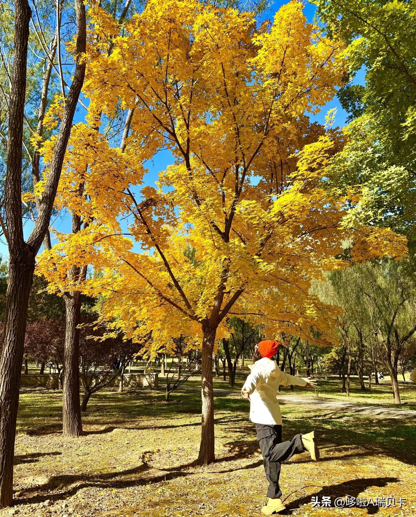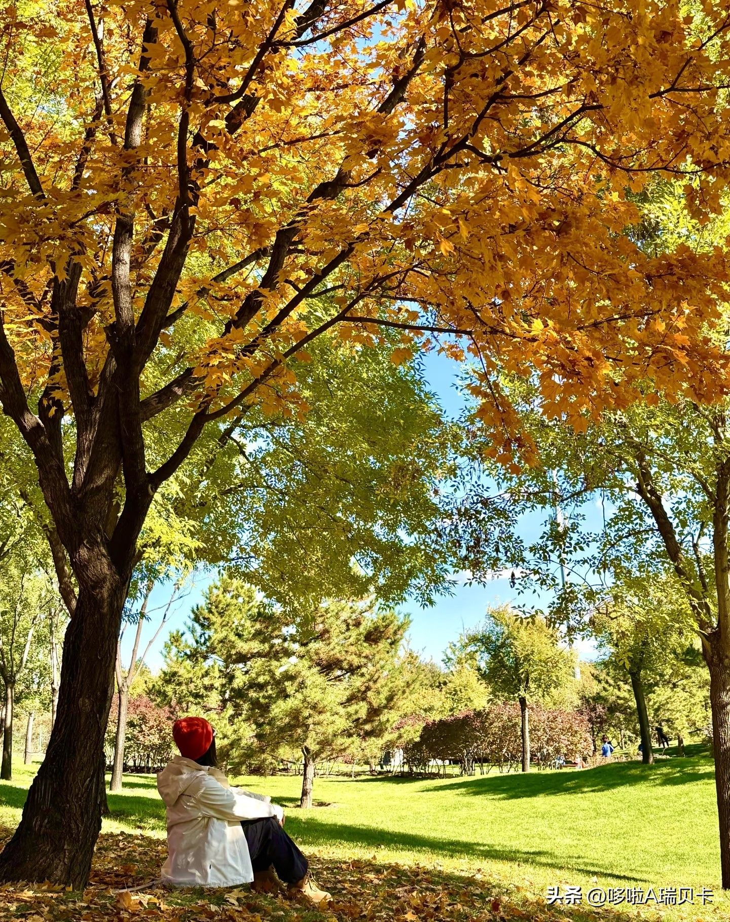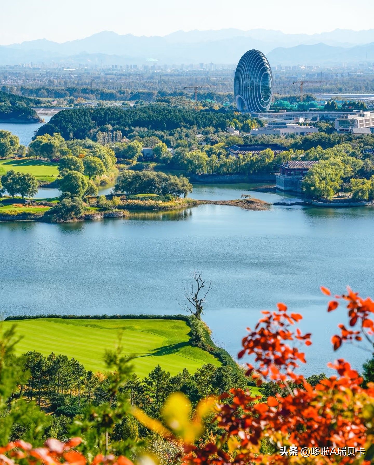 爬完西山步道别着急走!山下的雁栖湖步道能环湖骑行或散步——绿草地配红枫、黄叶,像闯进油画里,秋日氛围感直接拉满,而且全年免费开放,遛弯儿超惬意。