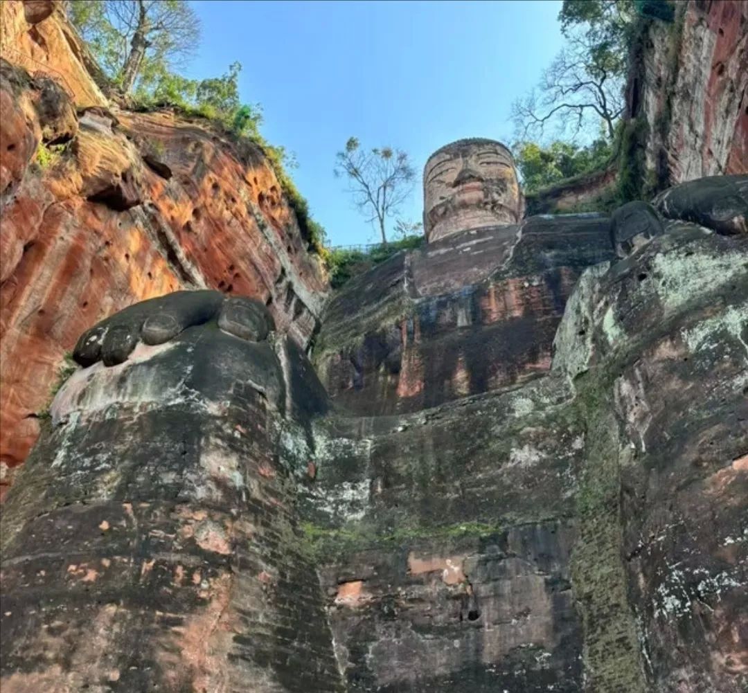 乐山大佛:坐落于乐山市南岷江东岸凌云寺侧,濒大渡河、青衣江和岷江三江汇流处,是世界上最大的石刻坐佛,“山是一尊佛,佛是一座山”,其雕刻工艺精湛,令人赞叹。